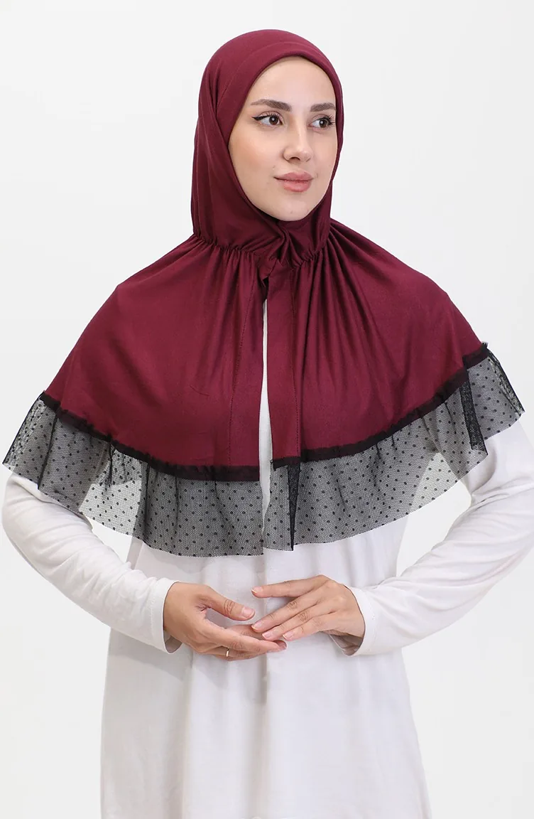 Praktischer Schal Mit Tülldetails 1270-11 Pflaume 1270-11