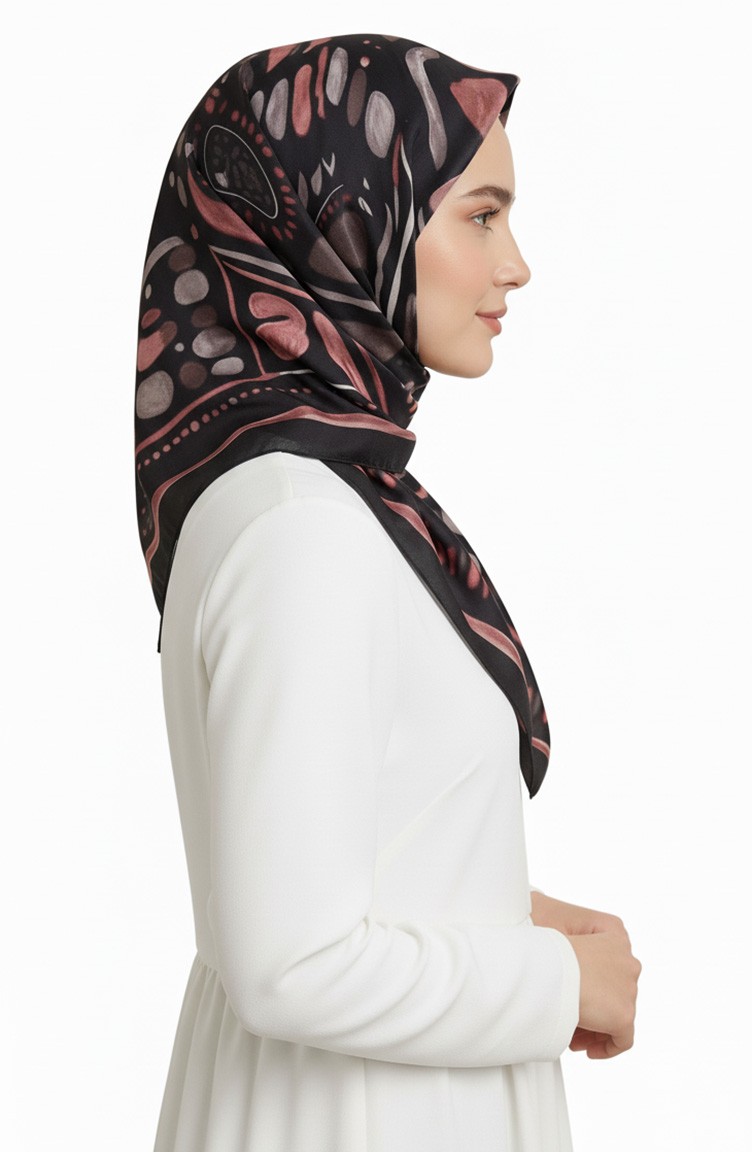 Bernsteinfarbener Schal Mit Muster 70326-05 Schwarze Rose 70326-05