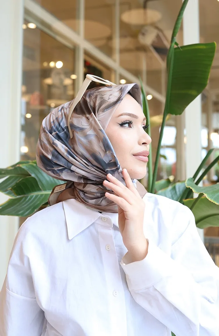 Gemusterter Baumwoll-Kokonschal 70335-04 Dunkelbeige Grau 70335-04