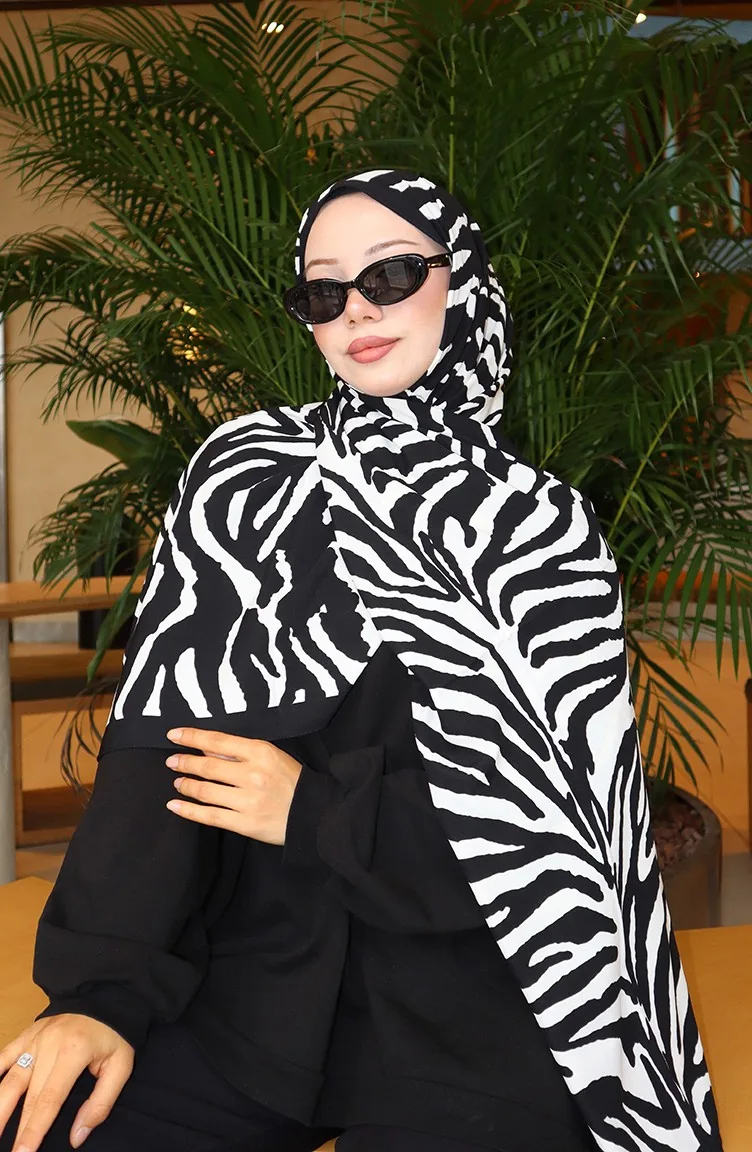 Capri-Schal Mit Zebramuster 70348-01 Schwarz Ecru 70348-01