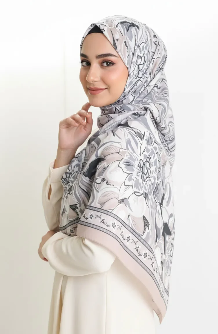 Gemusterter Baumwoll-Kokonschal 70327-05 Steingrau 70327-05