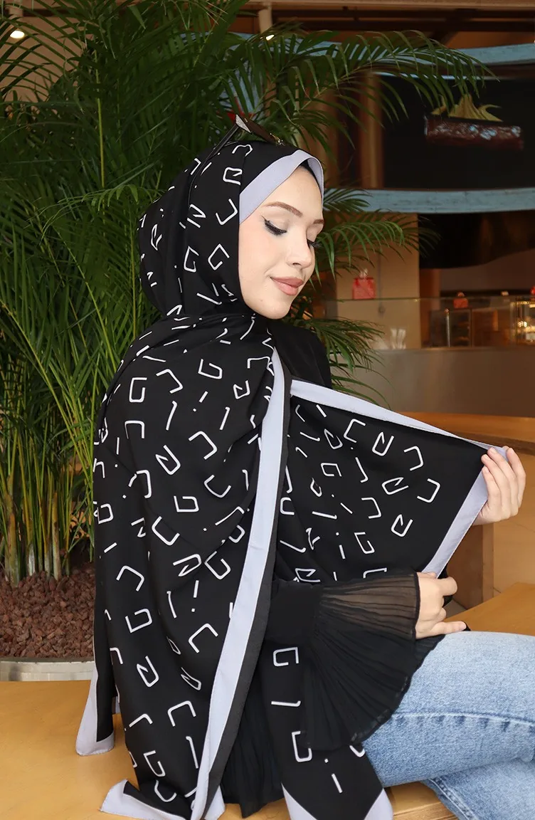 Gemusterter Capri-Schal 70350-05 Schwarz Grau 70350-05