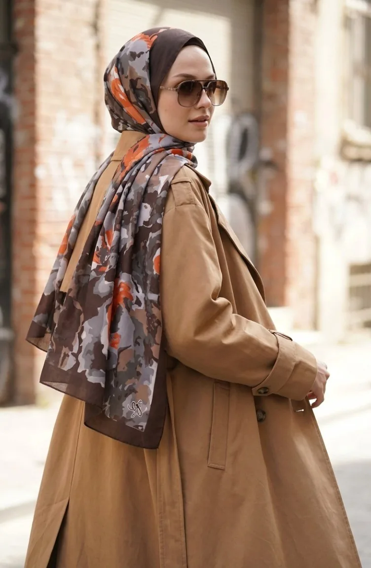Gemusterter Weicher Schal 70317-11 Braun Khaki 70317-11