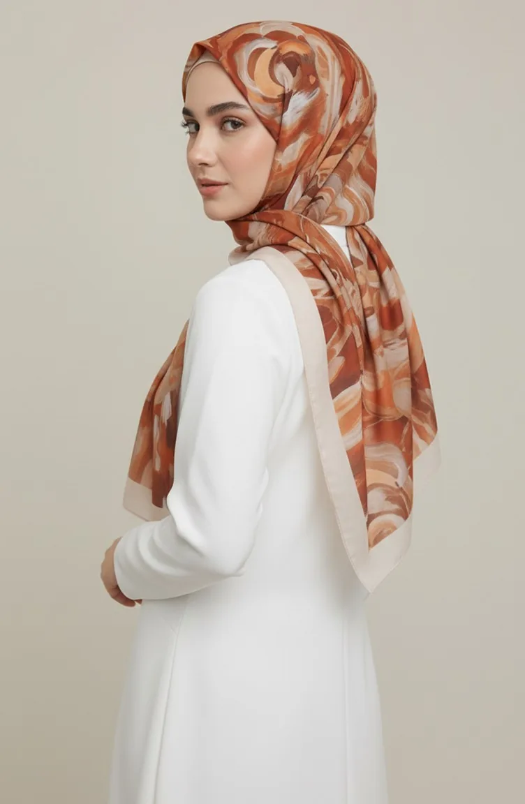 Schal Mit Blumenmuster 1006-02 Terrakotta 1006-02