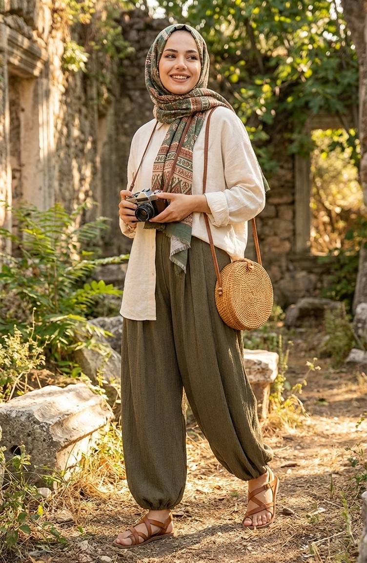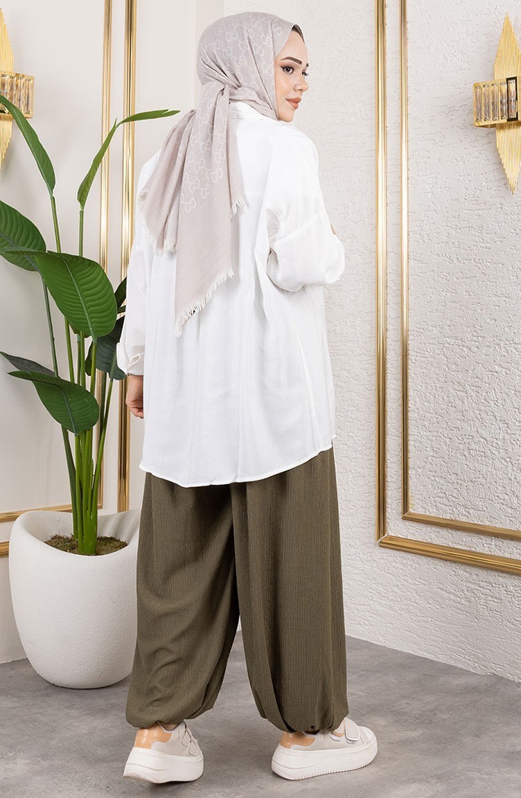 Shalwar-Hose Mit Elastischer Taille 0001-08 Khaki 0001-08