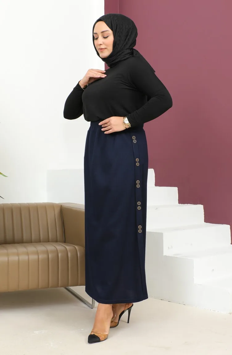 Plus Size Rock Mit Knopfdetails Und Gummizug 4200-04 Marineblau 4200-04