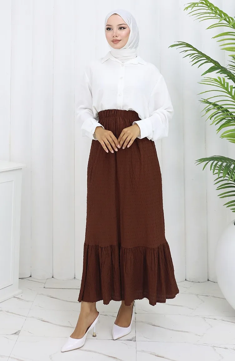 Rock Mit Elastischer Taille 2127-01 Braun 2127-01