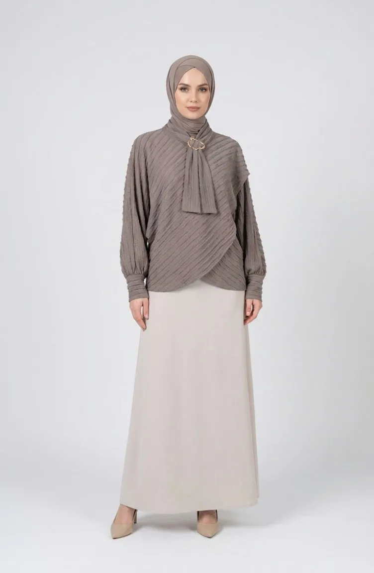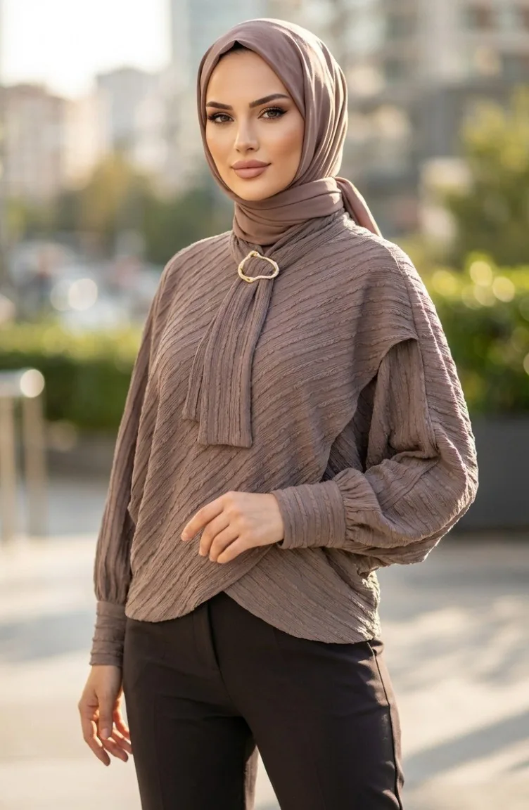 Bluse Mit Bindekragen 71370-02 Nerz 71370-02