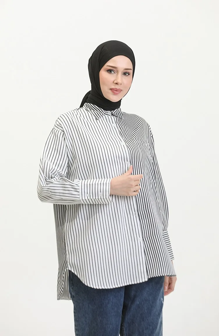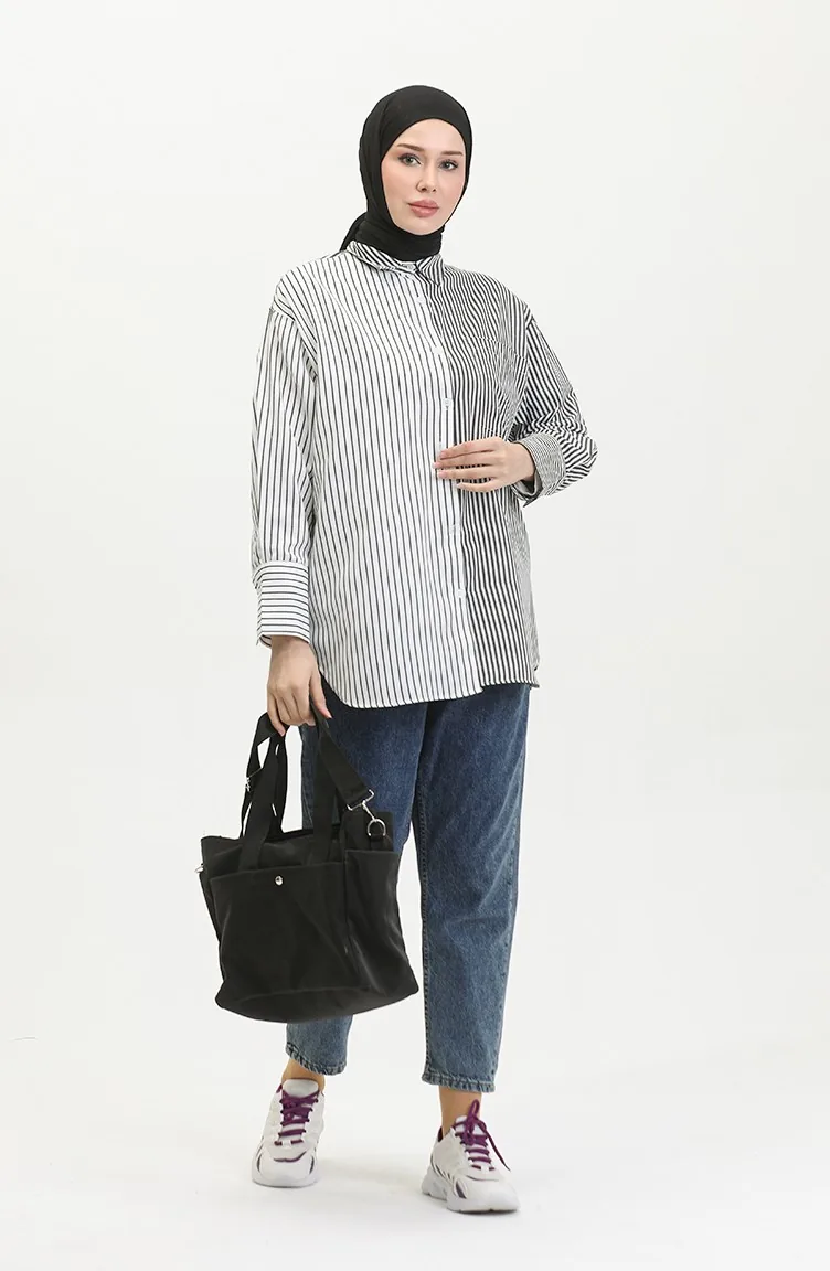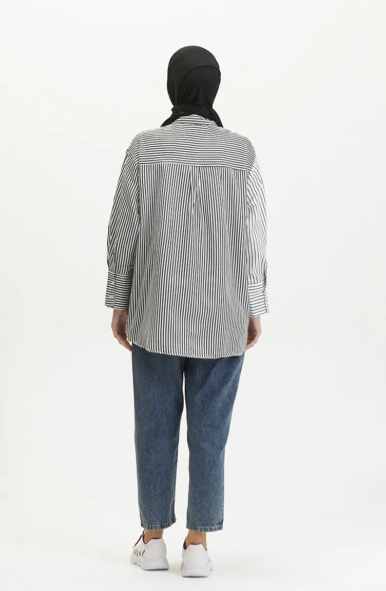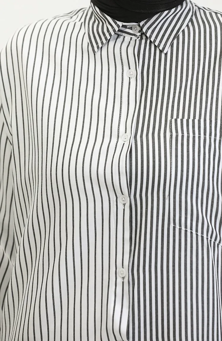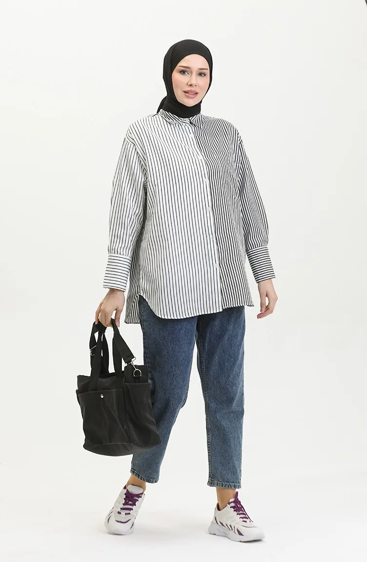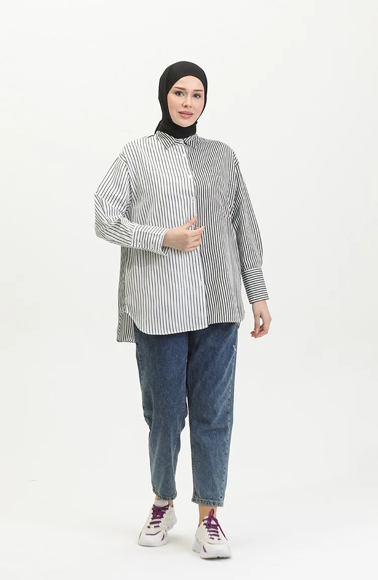 Garniertes Gestreiftes Hemd 4809-02 Schwarz 4809-02
