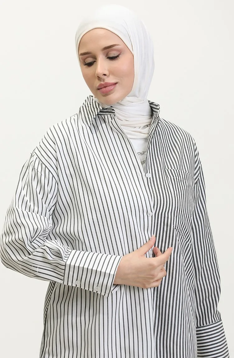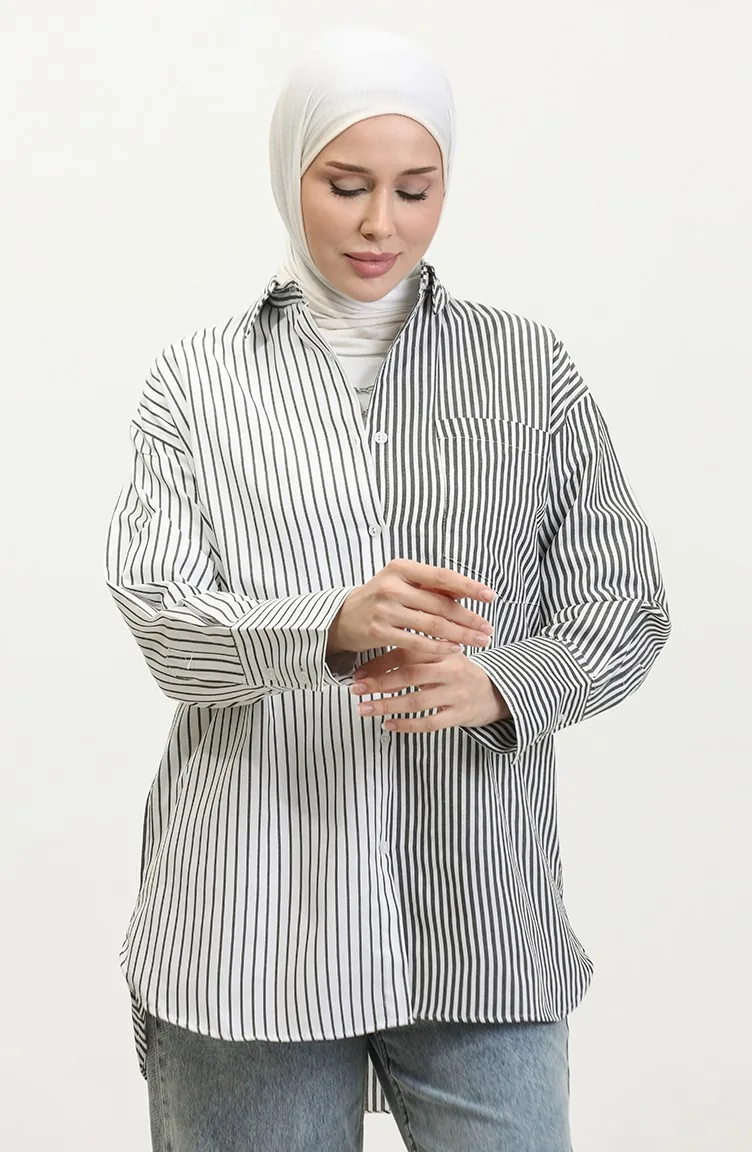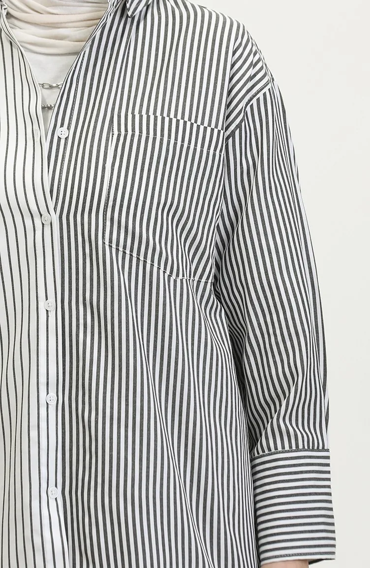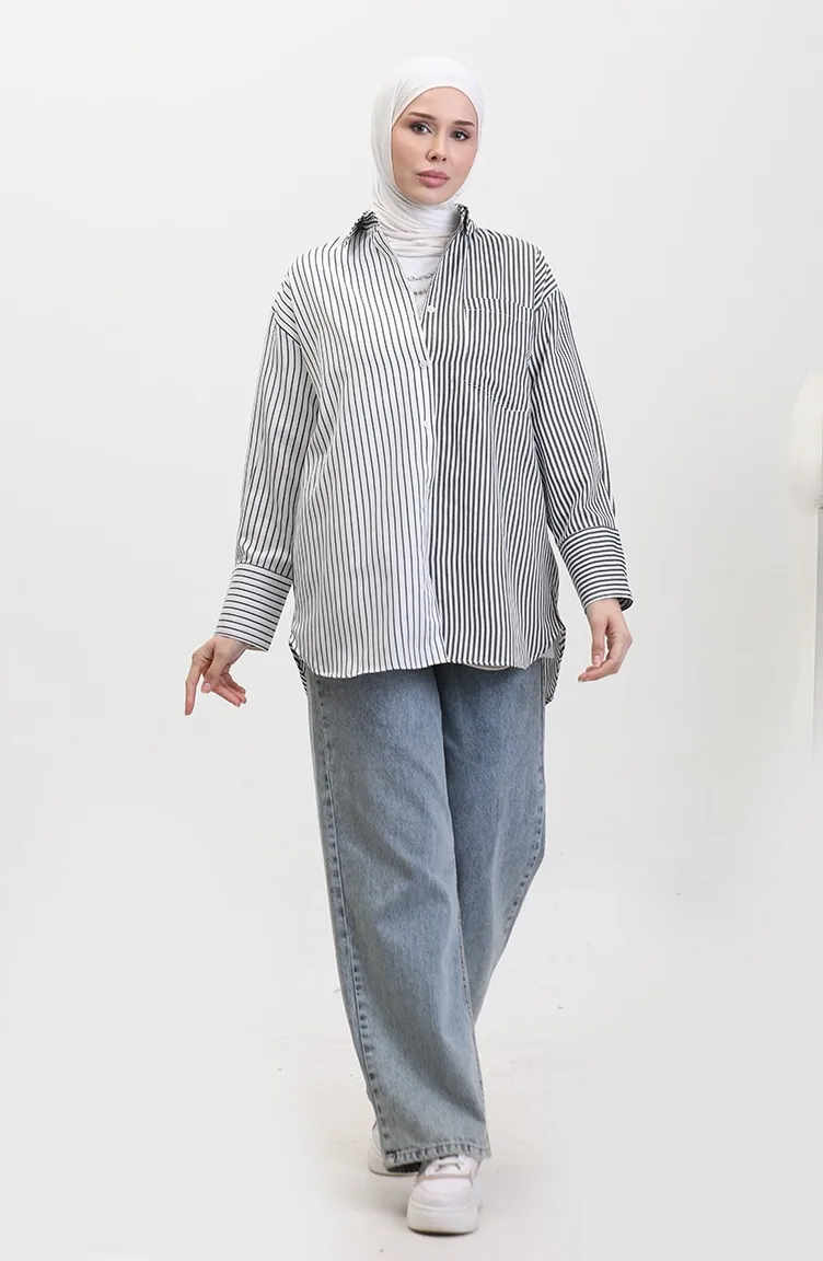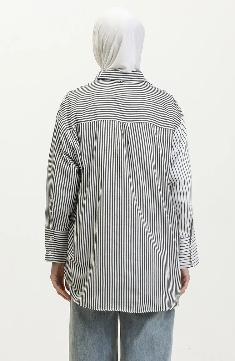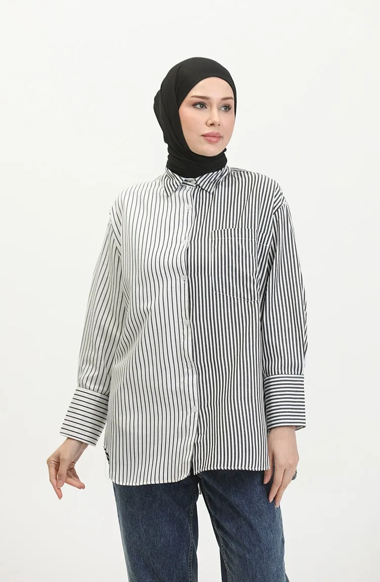 Garniertes Gestreiftes Hemd 4809-02 Schwarz 4809-02