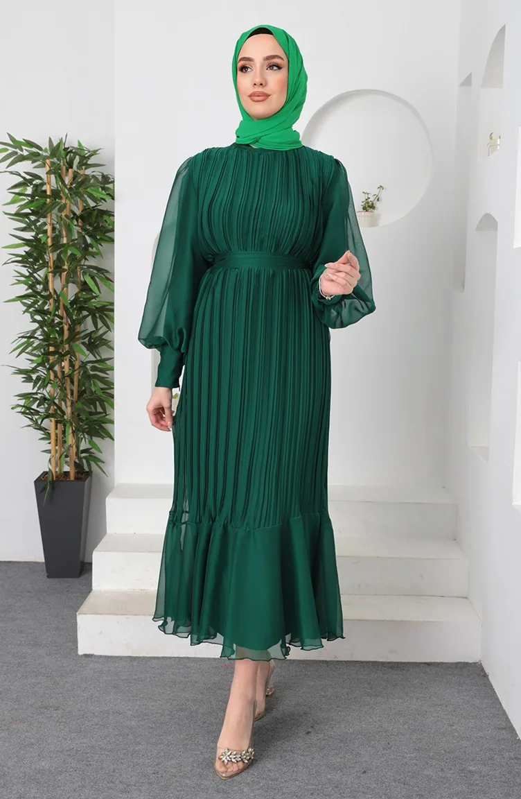 Plissiertes Janjan-Abendkleid 5510-02 Smaragdgrün 5510-02