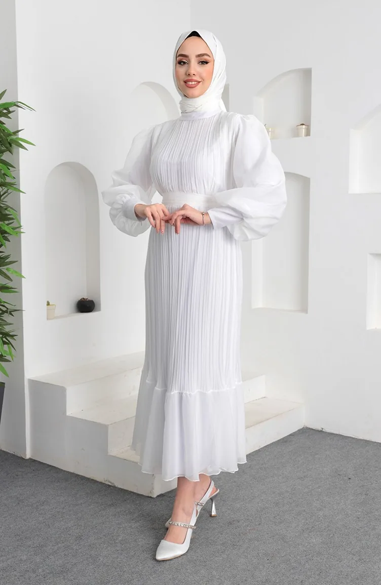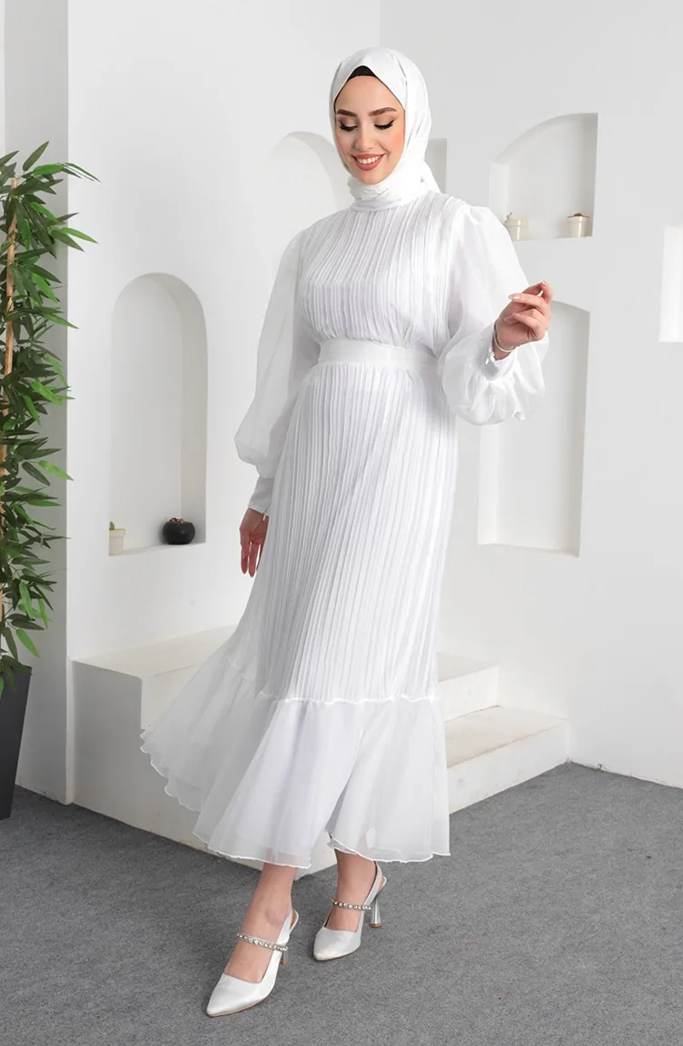 Plissiertes Janjan-Abendkleid 5510-05 Weiß 5510-05