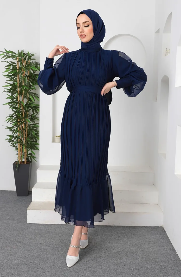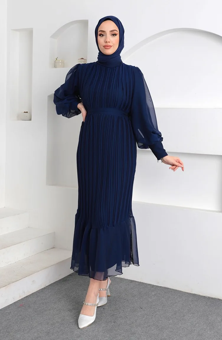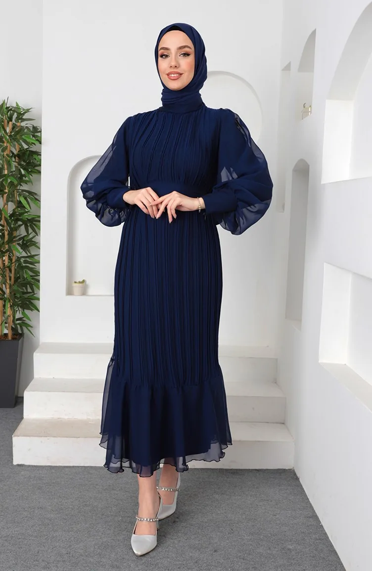 Plissiertes Janjan-Abendkleid 5510-06 Marineblau 5510-06