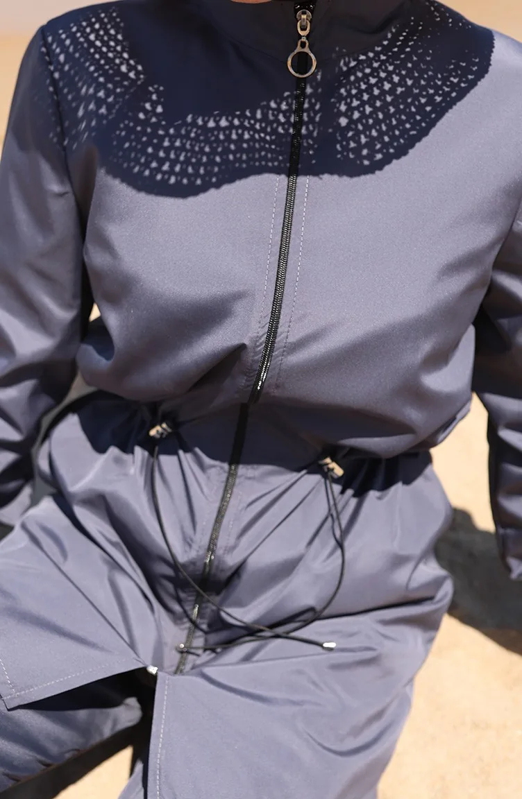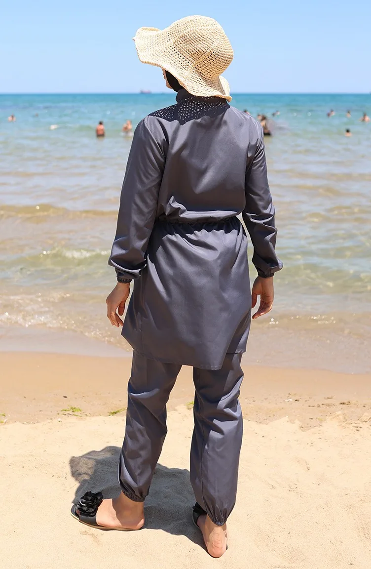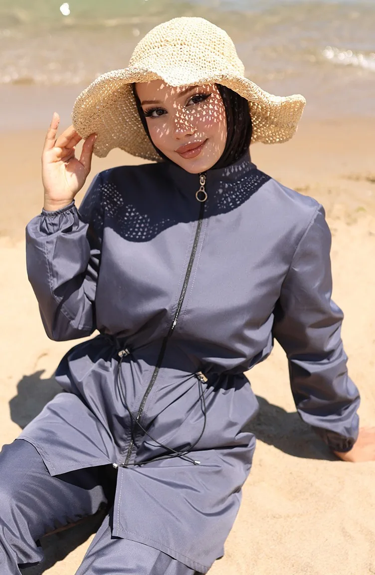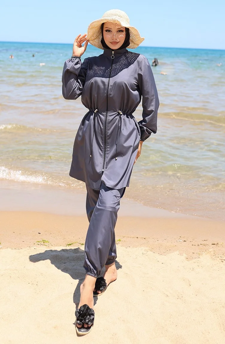 Strand Hijab Badeanzug Mit Elastischer Taille Und Reißverschluss Und Geschenktasche 9002-03 Anthrazit 9002-03