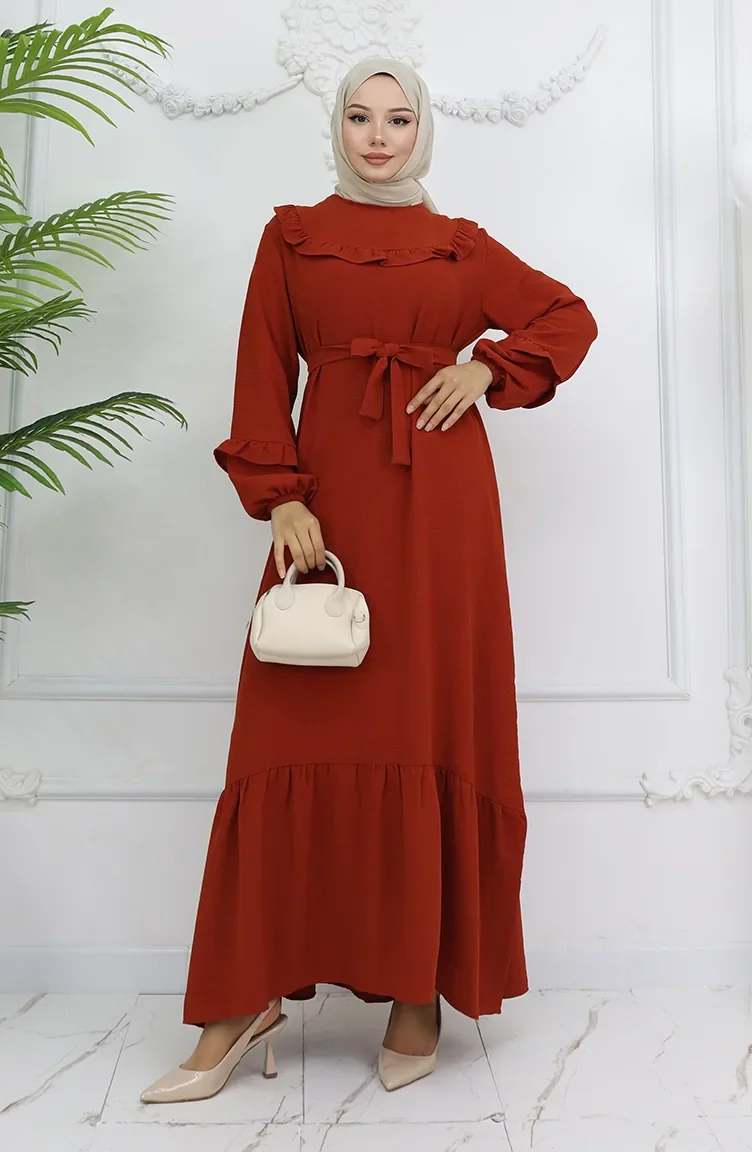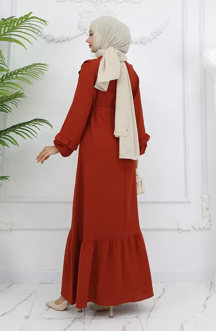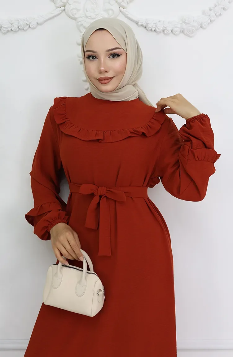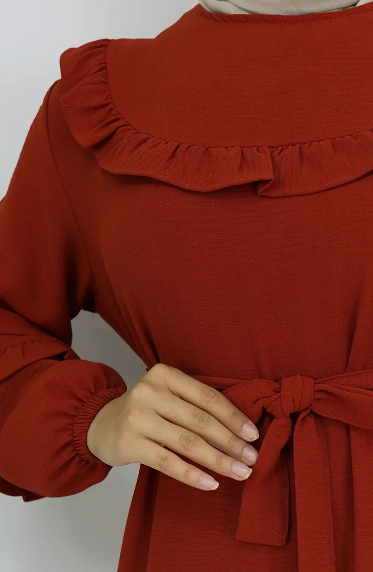 Aerobin Stoff Kleid Mit Rüschendetail 0023-06 Kachel 0023-06