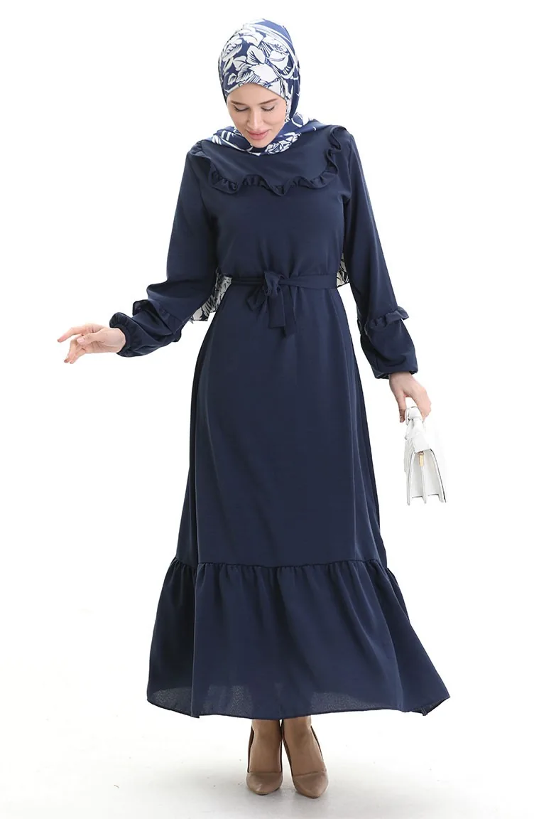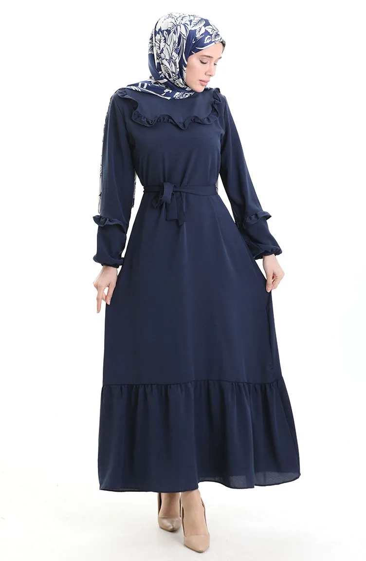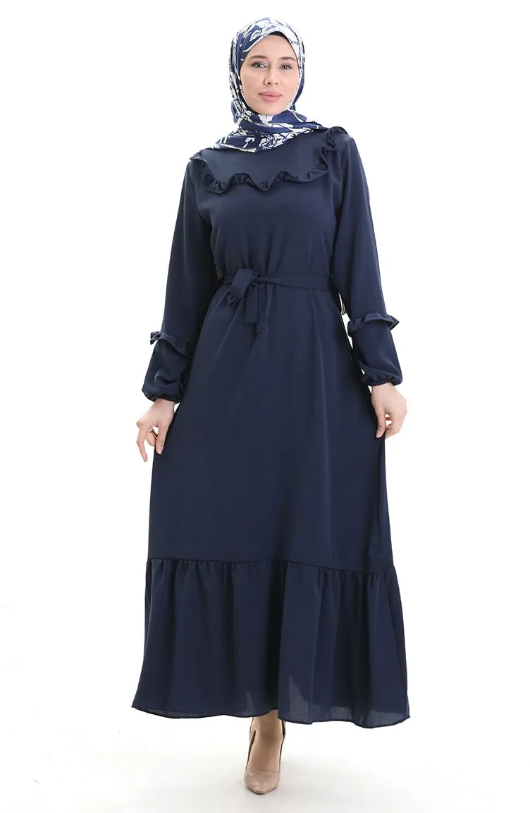 Aerobin Stoffkleid Mit Rüschendetail 0023-11 Marineblau 0023-11