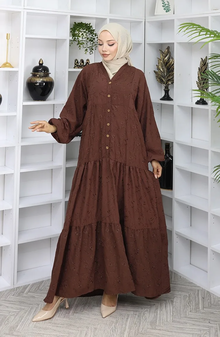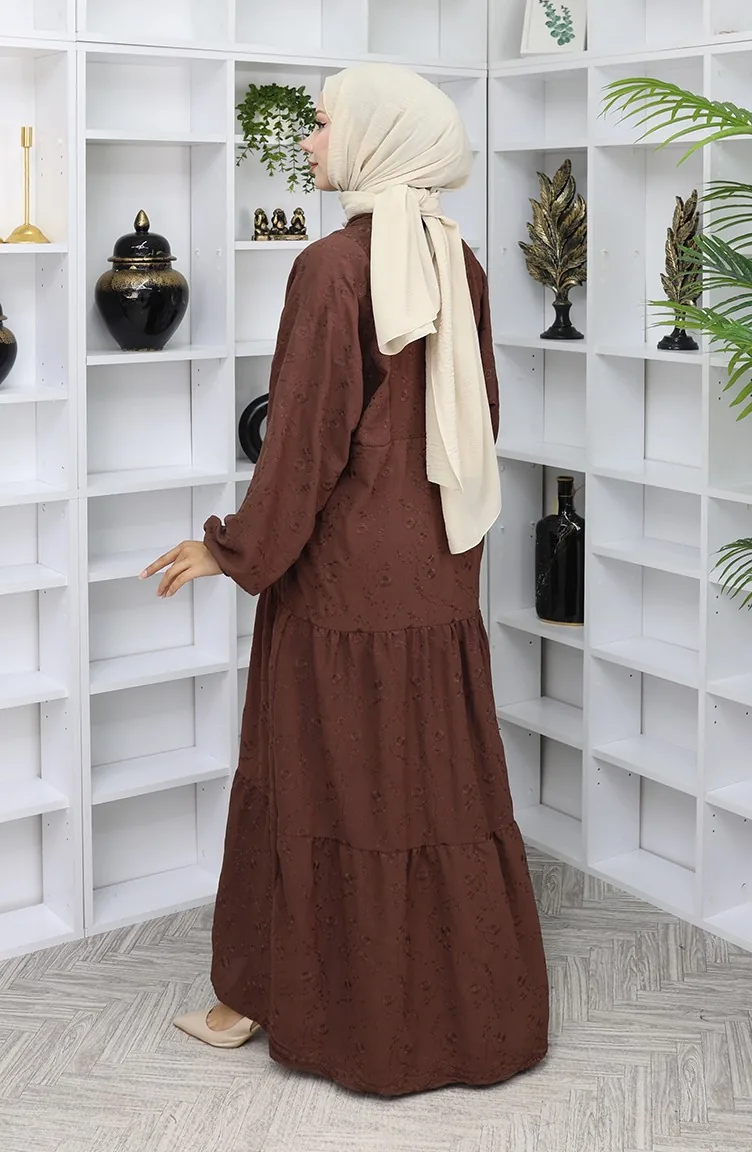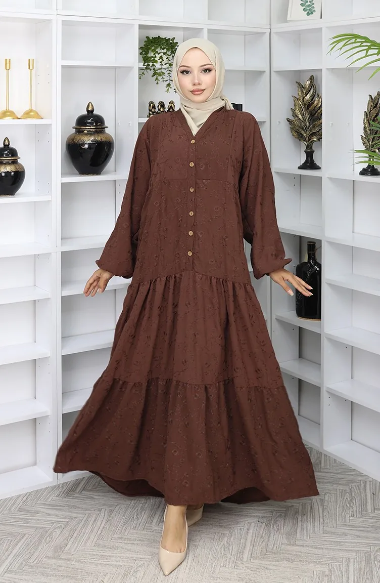 Besticktes Kleid Mit Halben Knöpfen 0059-03 Braun 0059-03