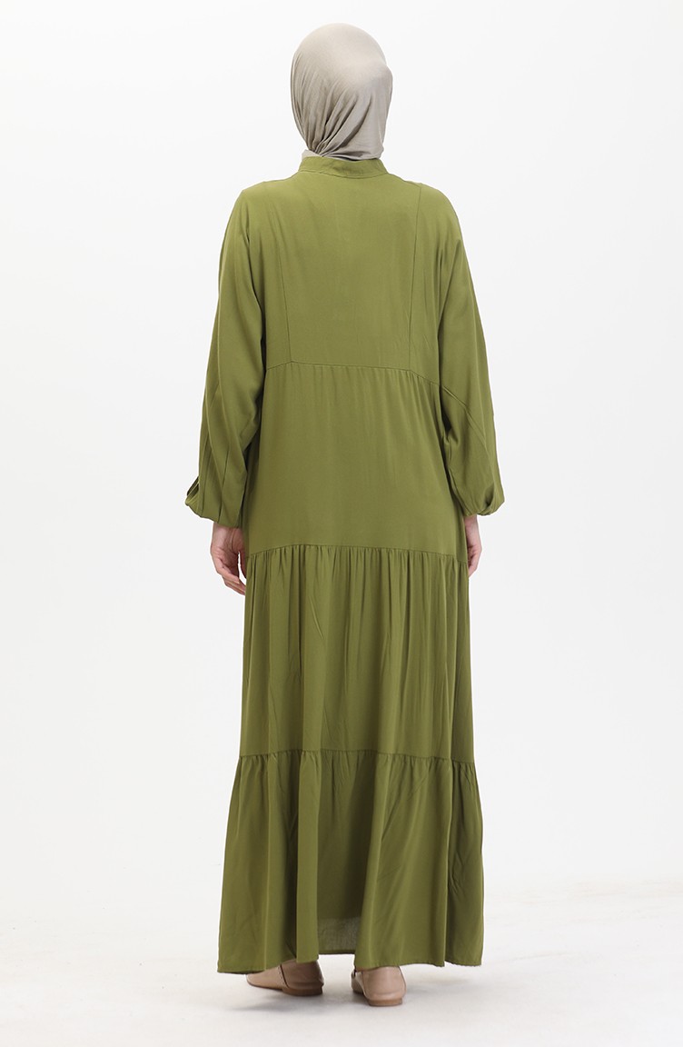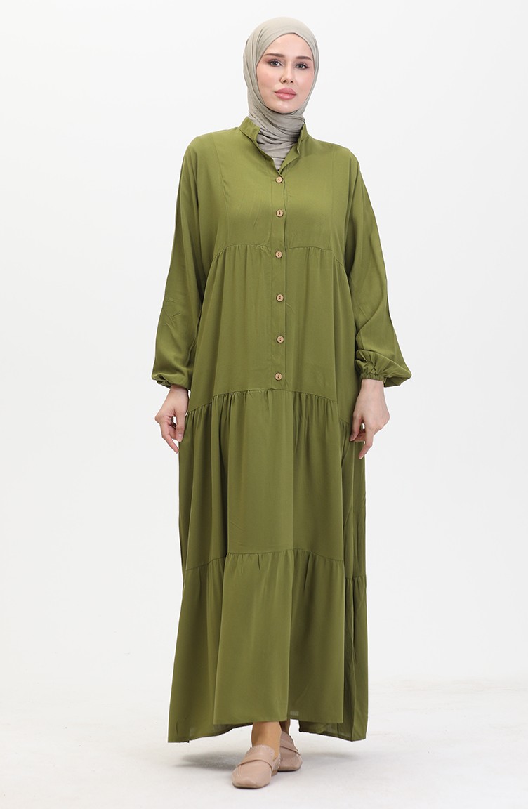 Geknöpftes Kleid Mit Elastischen Ärmeln 0463-01 Ölgrün 0463-01