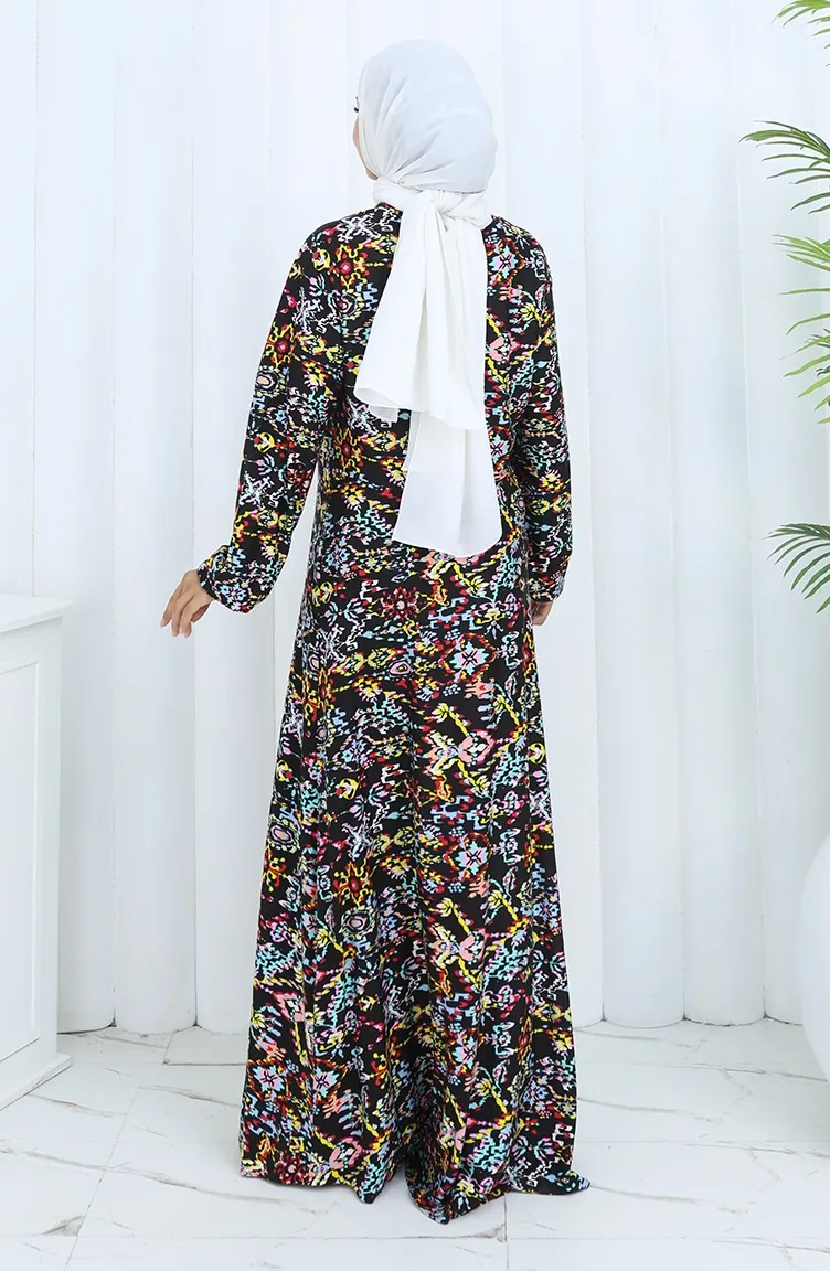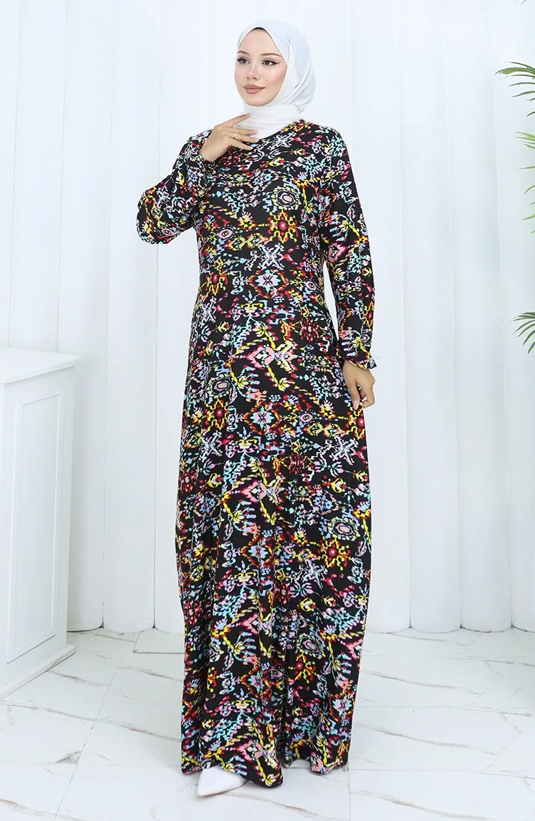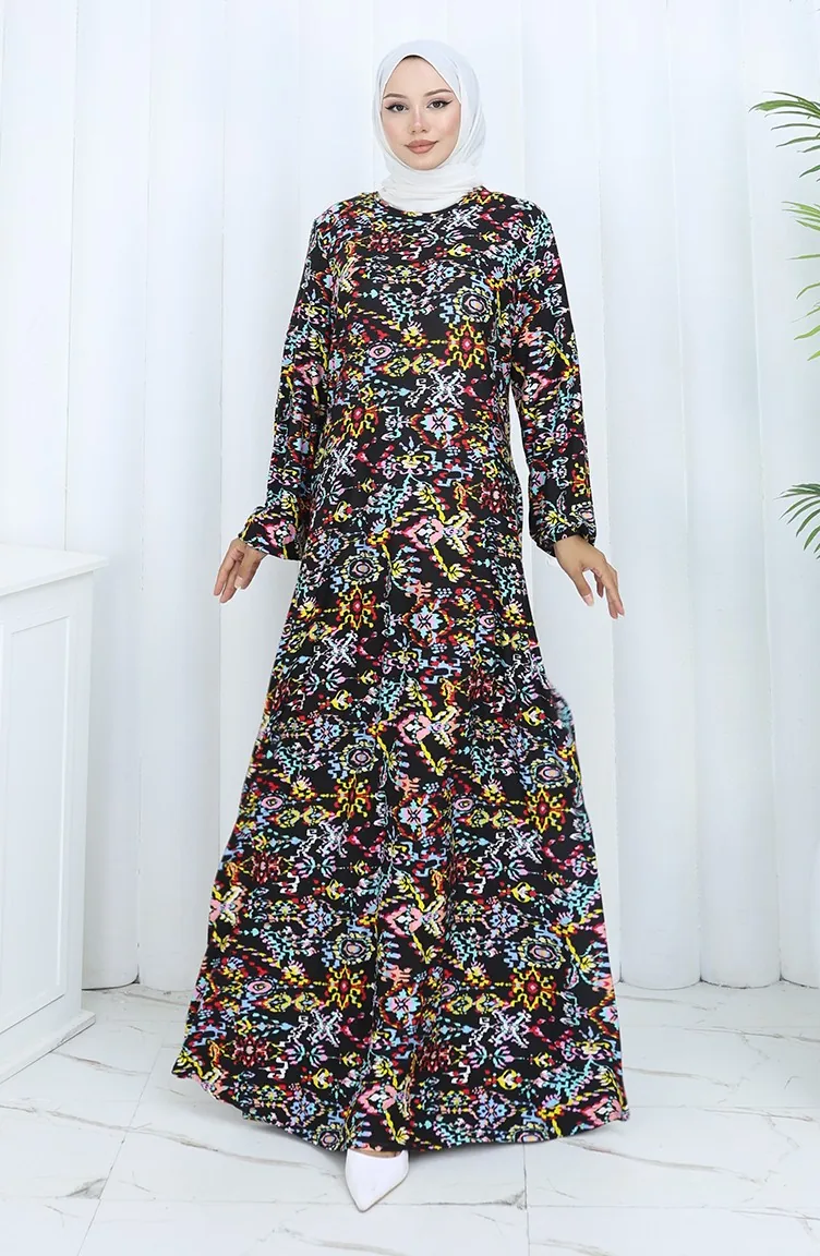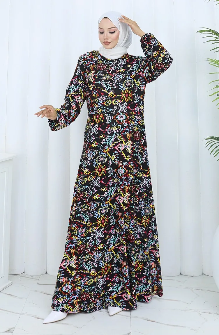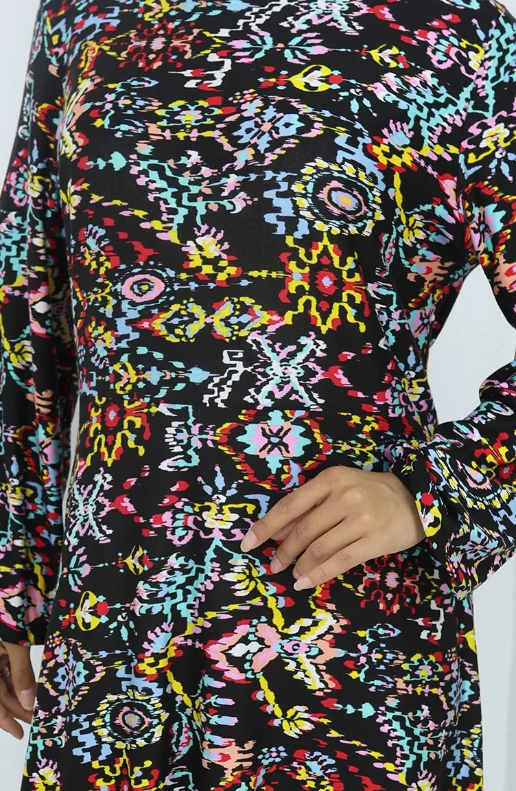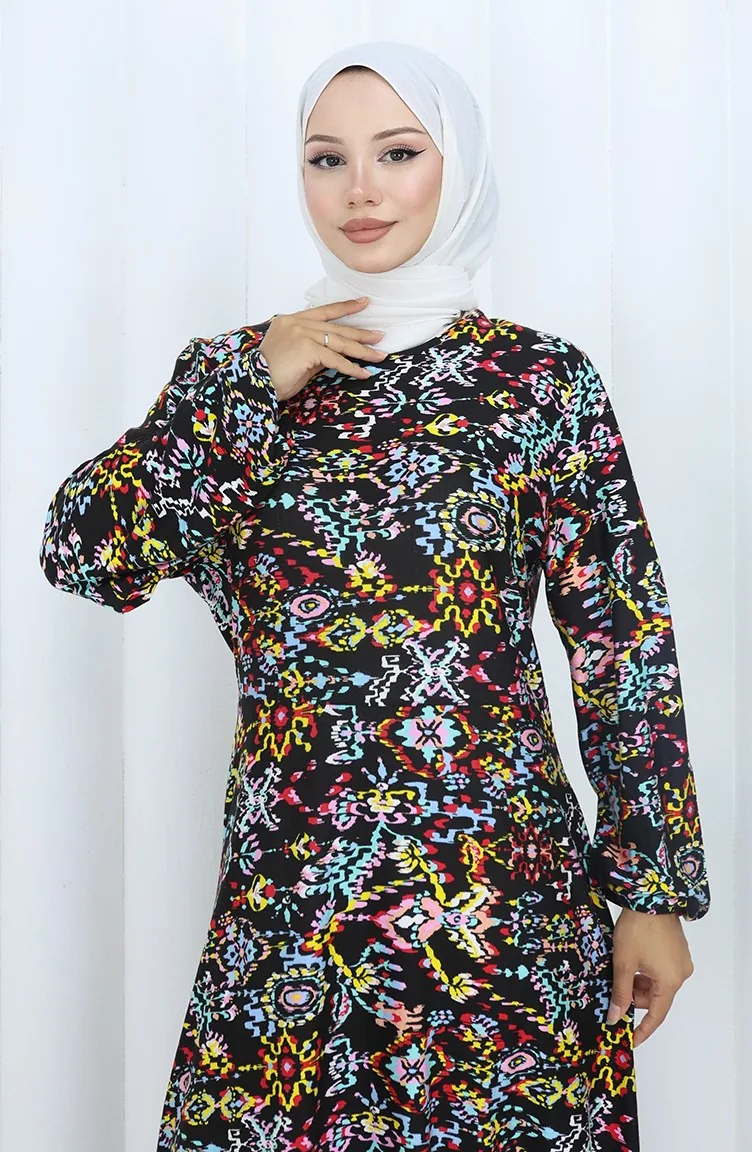Gemustertes Kleid Aus Gekämmter Baumwolle 2135-01 Schwarz Gelb 2135-01