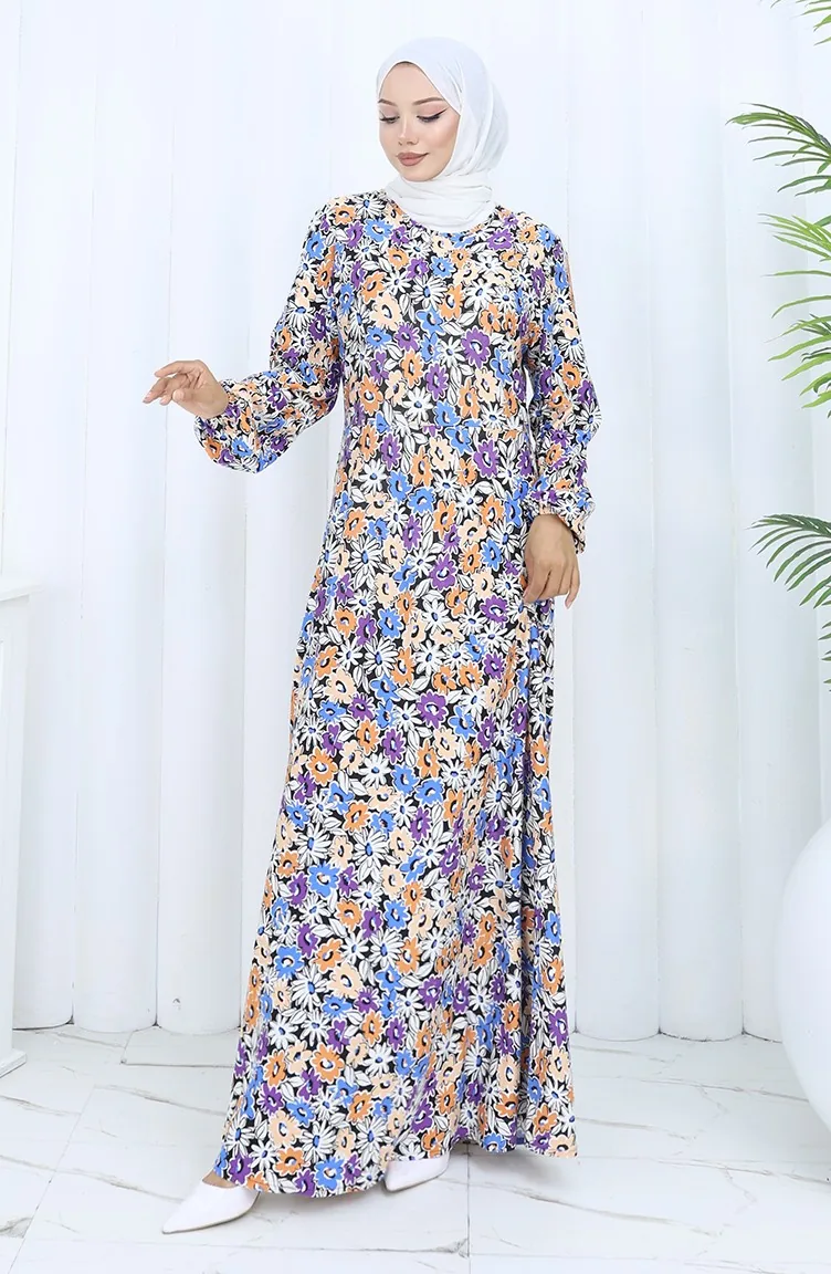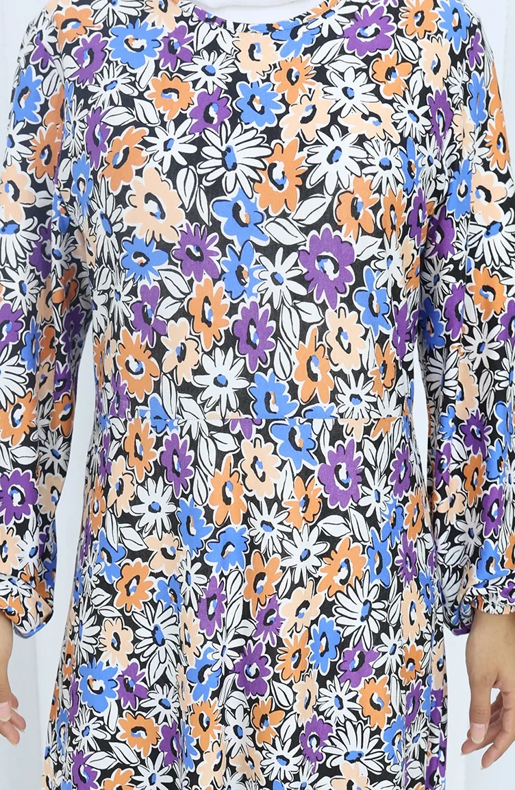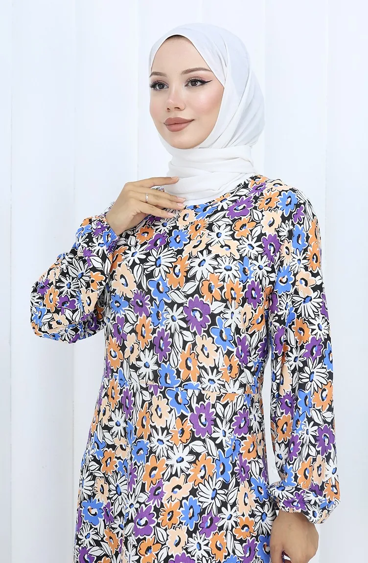 Gemustertes Kleid Aus Gekämmter Baumwolle 2135A-01 Lila 2135A-01