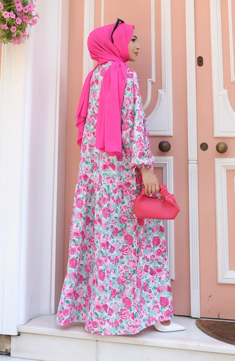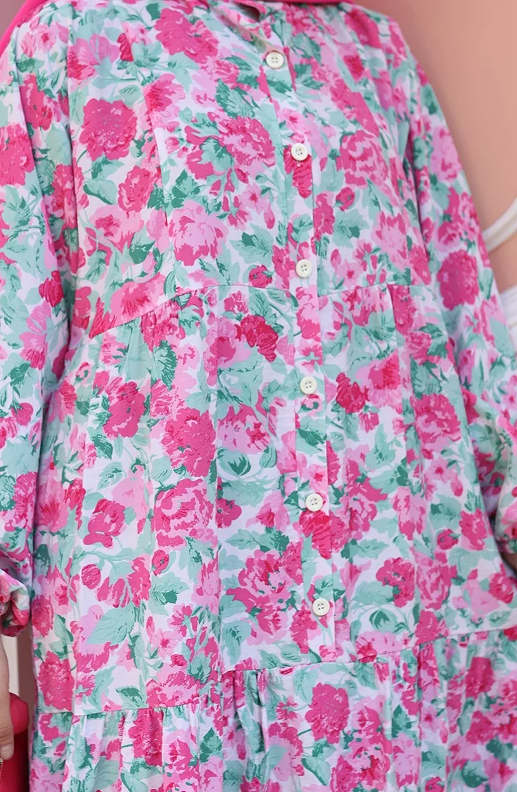 Gemustertes Kleid Mit Halben Knöpfen 2148-01 Staubrosa 2148-01