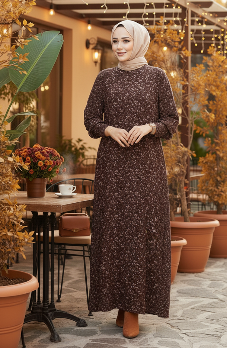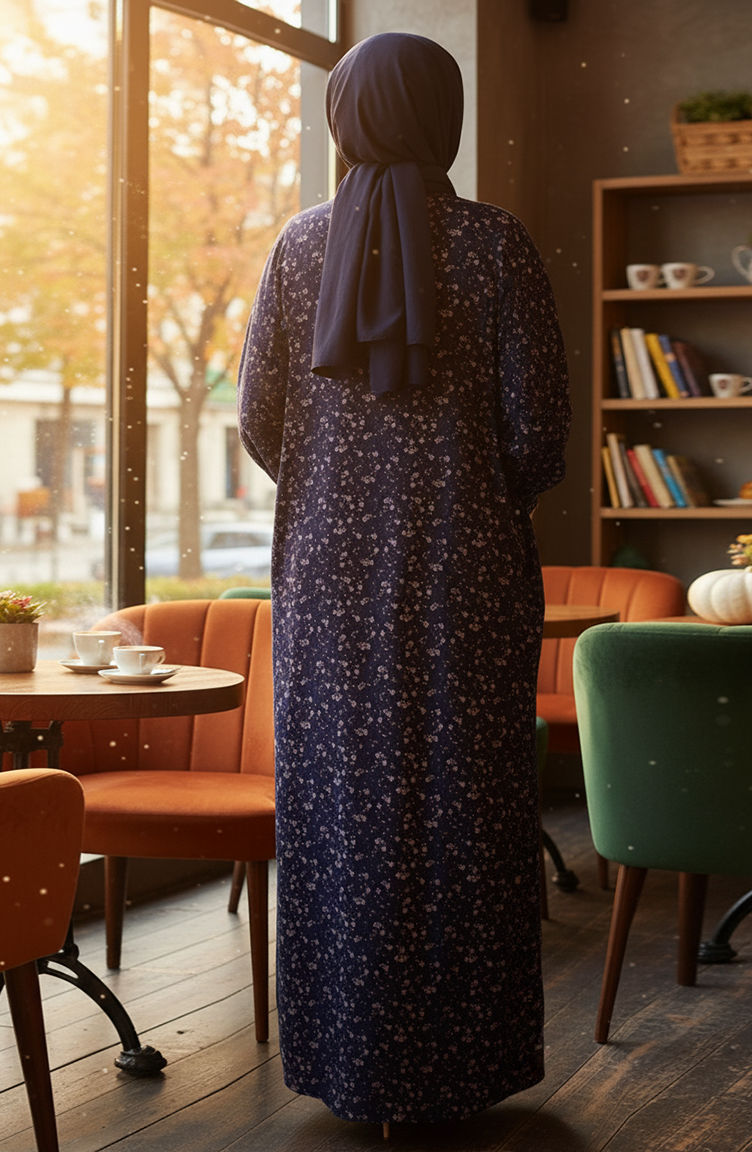 Gemustertes Kreppkleid 7137-02 Dunkelblau 7137-02