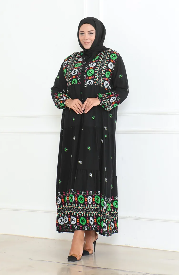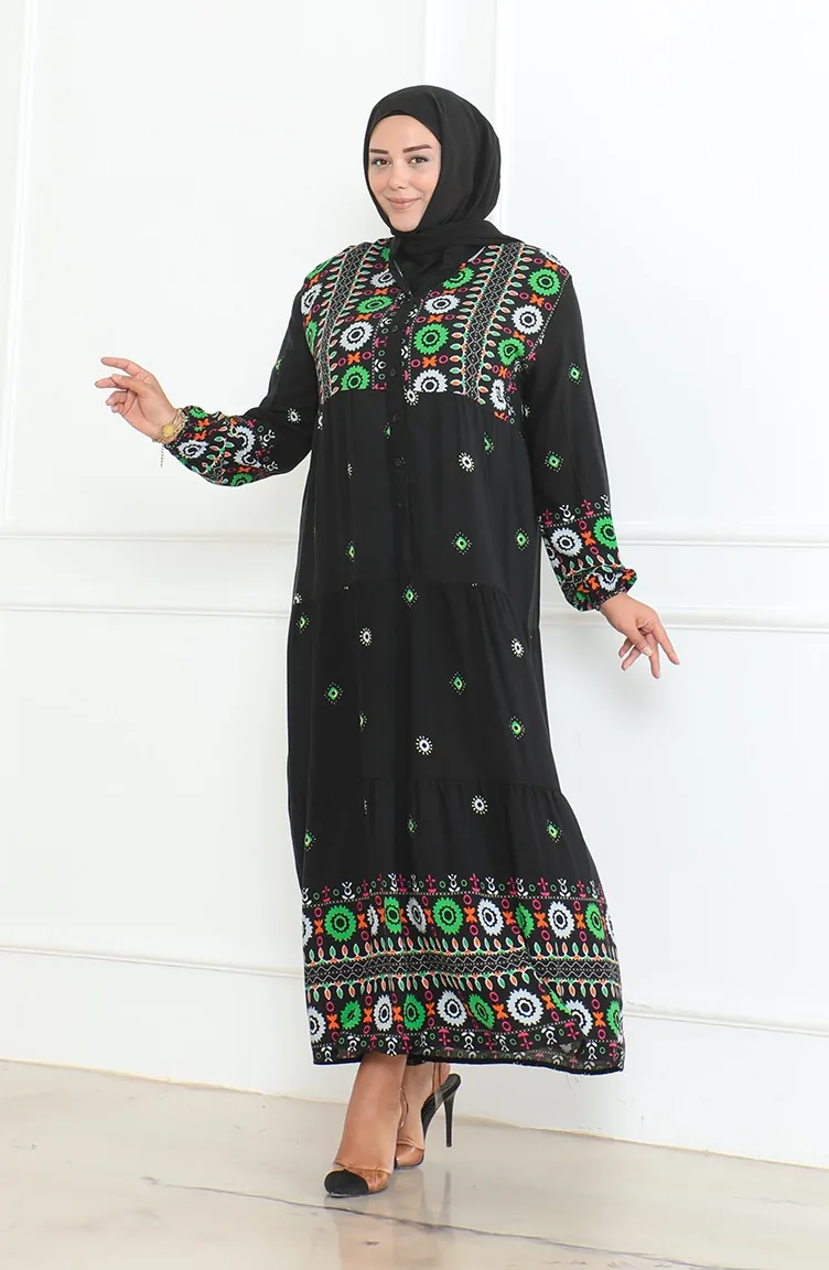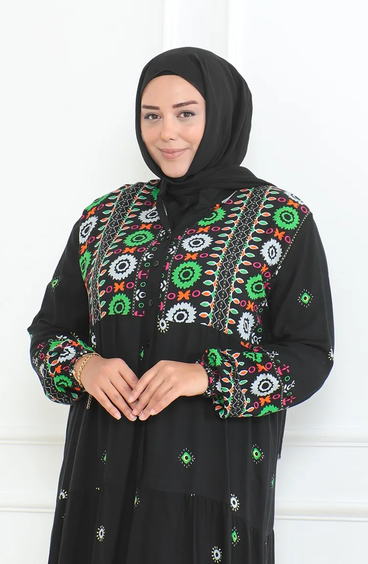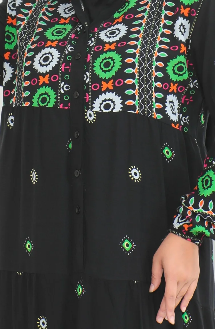 Großes Gemustertes Viskosekleid Mit Knöpfen 5070-01 Schwarz 5070-01