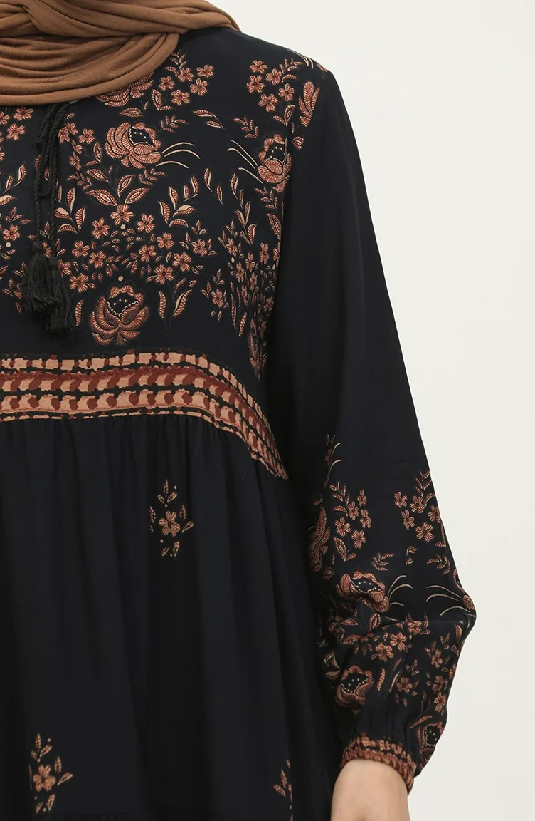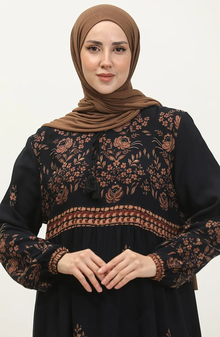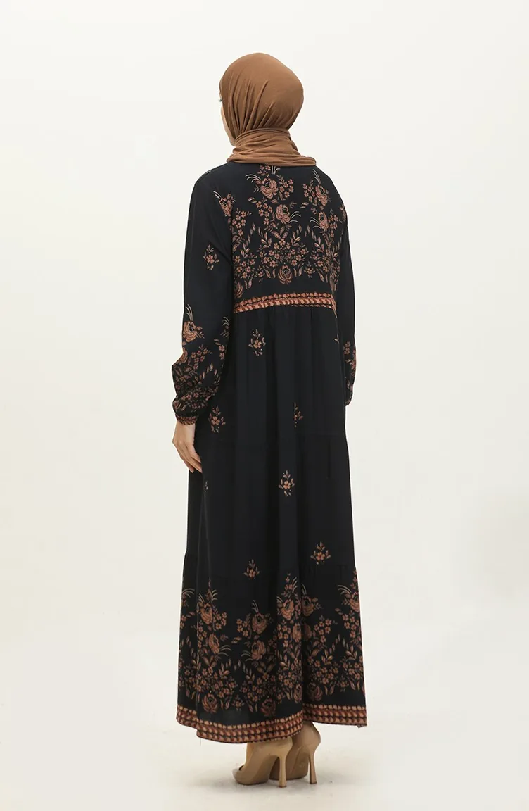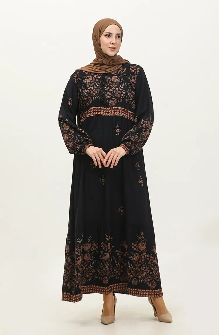 Großes Viskosekleid Mit Blumenmuster 4084-01 Marineblau 4084-01