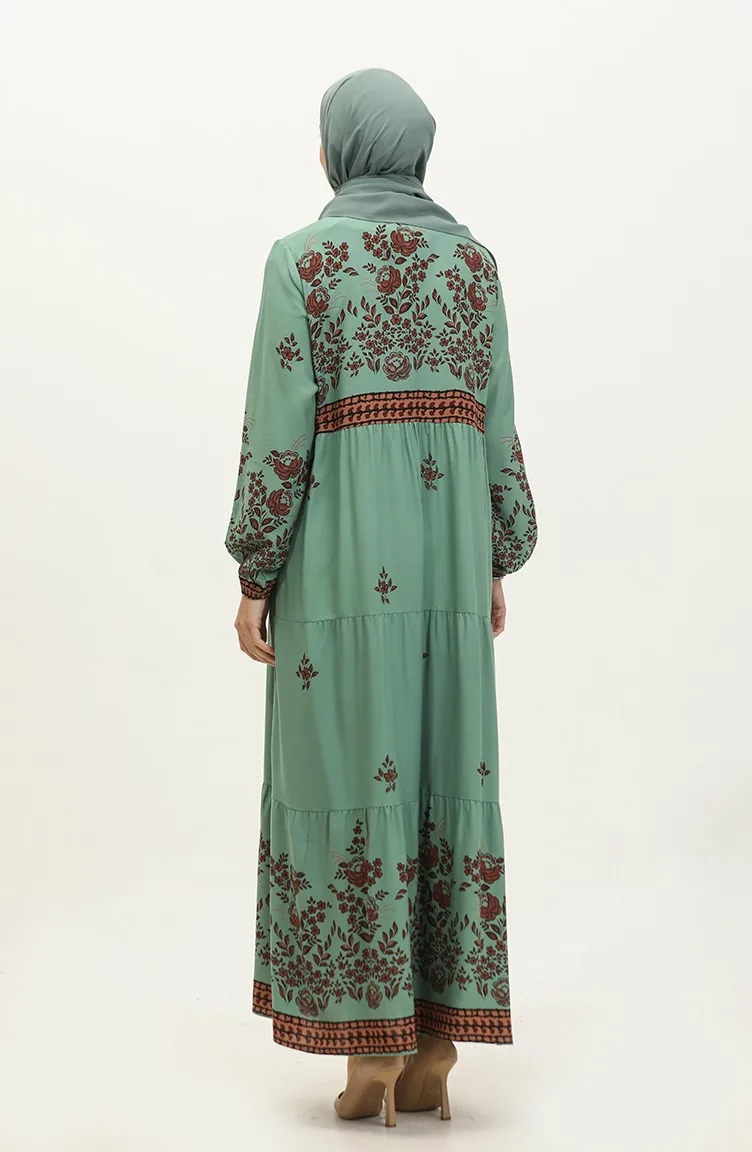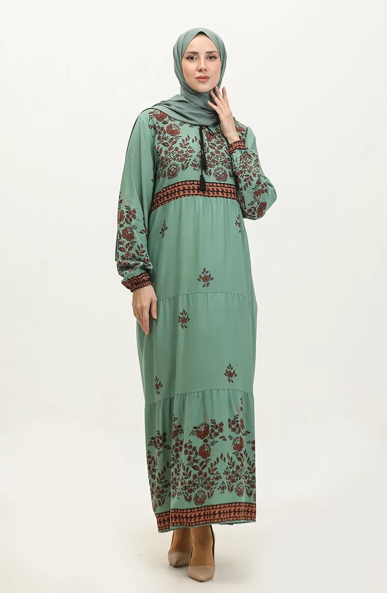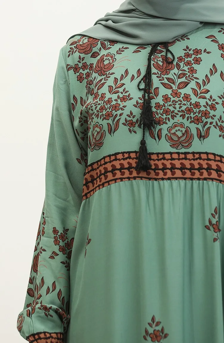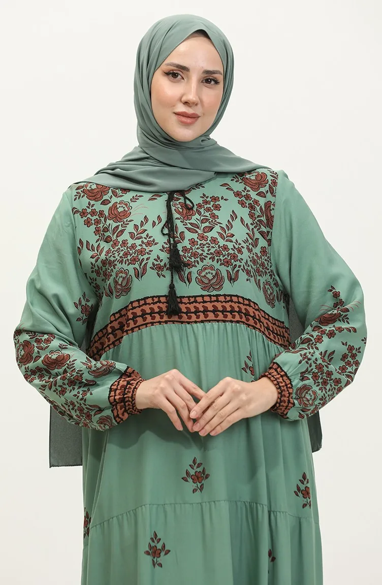 Großes Viskosekleid Mit Blumenmuster 4084-04 Çağla Green 4084-04