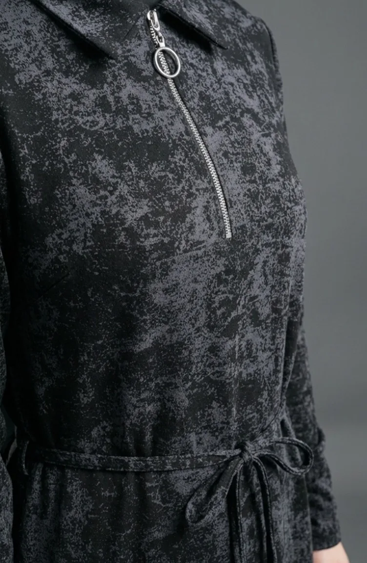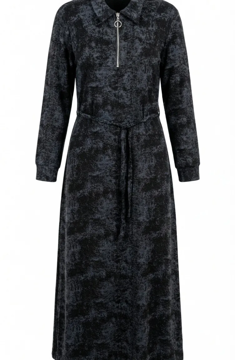 Hemdkragenkleid Aus Modal Mit Reißverschluss Und Schnürung 0235-04 Schwarz 0235-04