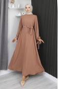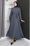Hijab Kleid Mit Schnürung Und Manschetten 7121-05 Schwarz 7121-05