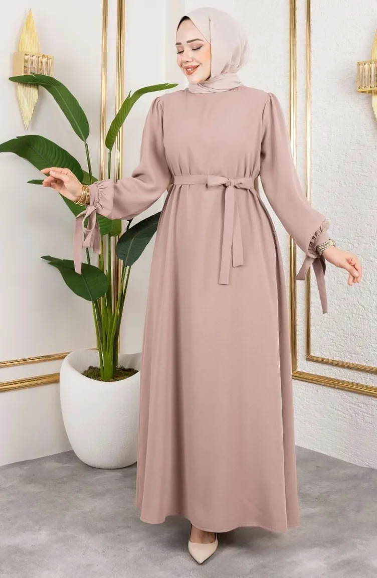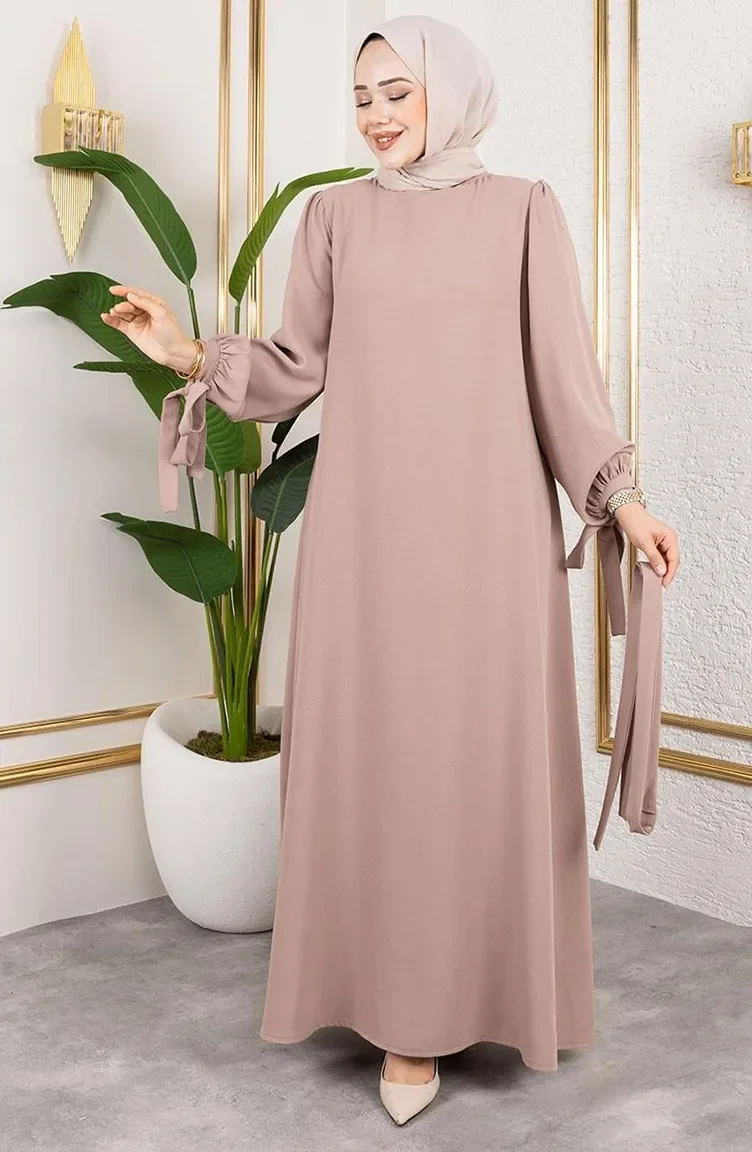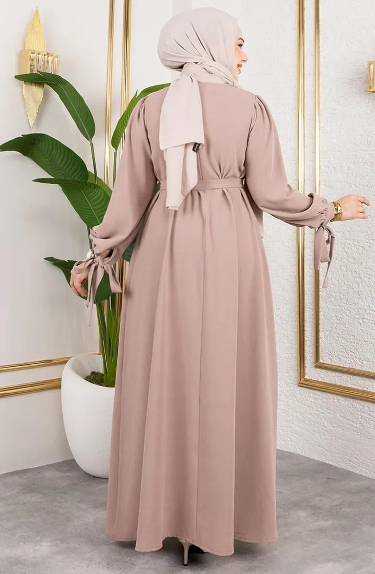 Hijab Kleid Mit Schnürung Und Manschetten 7121-06 Nerz 7121-06