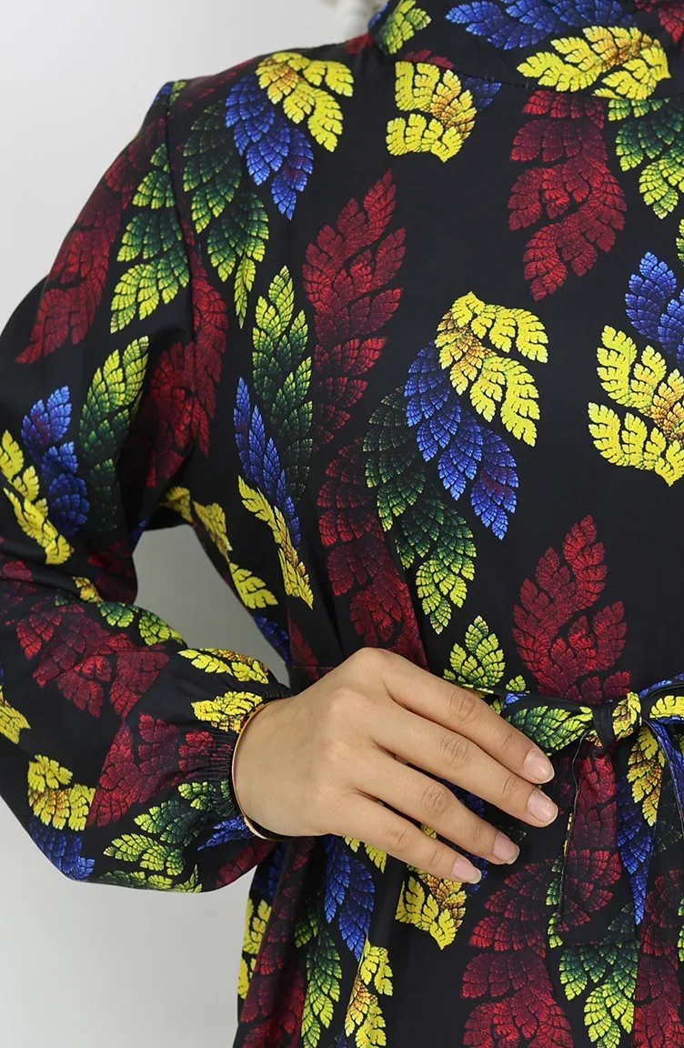 Schwarz farbe verwendet. Krepp ist angenehm zu verwenden mit nicht-faltige Textur. Entworfen mit gemustertem Stoff. Das Produkt kann mit Ungefüttert verwenden. Es besteht aus Gummi Ärmeln. Jede Kleidungsseite ist die bevorzugte Nullkragenform. Es ist für vier Jahreszeiten geeignet. Rahat. Große Größen Option ist verfügbar.