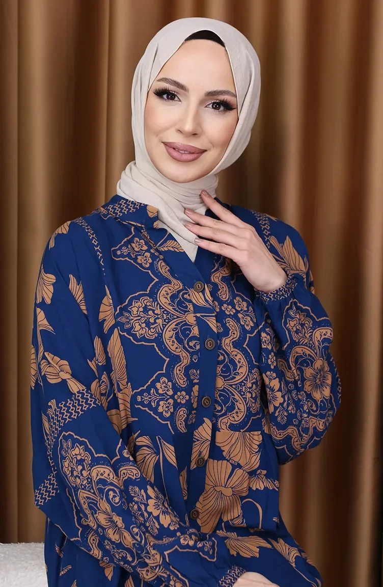 Kleid Mit Ballonärmeln Und Blumenmuster 5574-06 Indigo 5574-06