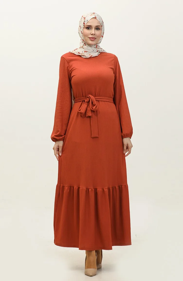 Kleid Mit Gerafftem Saum Und Gürtel 0202DA-01 Kachel 0202DA-01