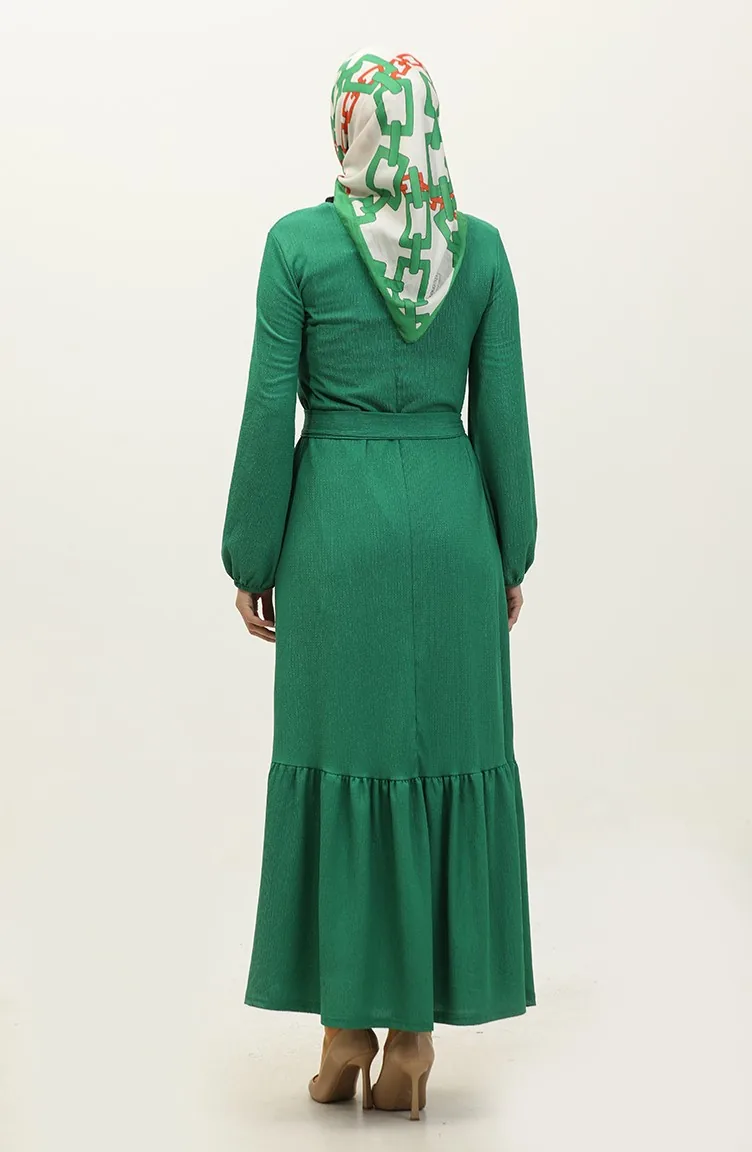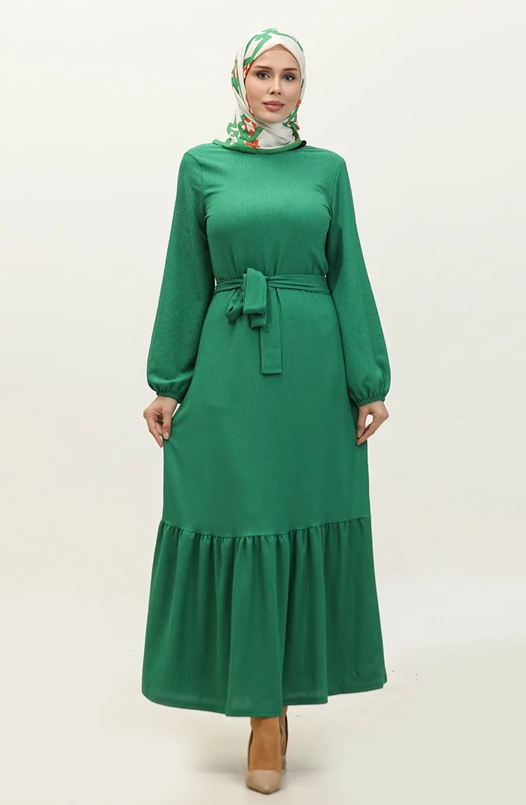 Kleid Mit Gerafftem Saum Und Gürtel 0202DA-03 Grün 0202DA-03