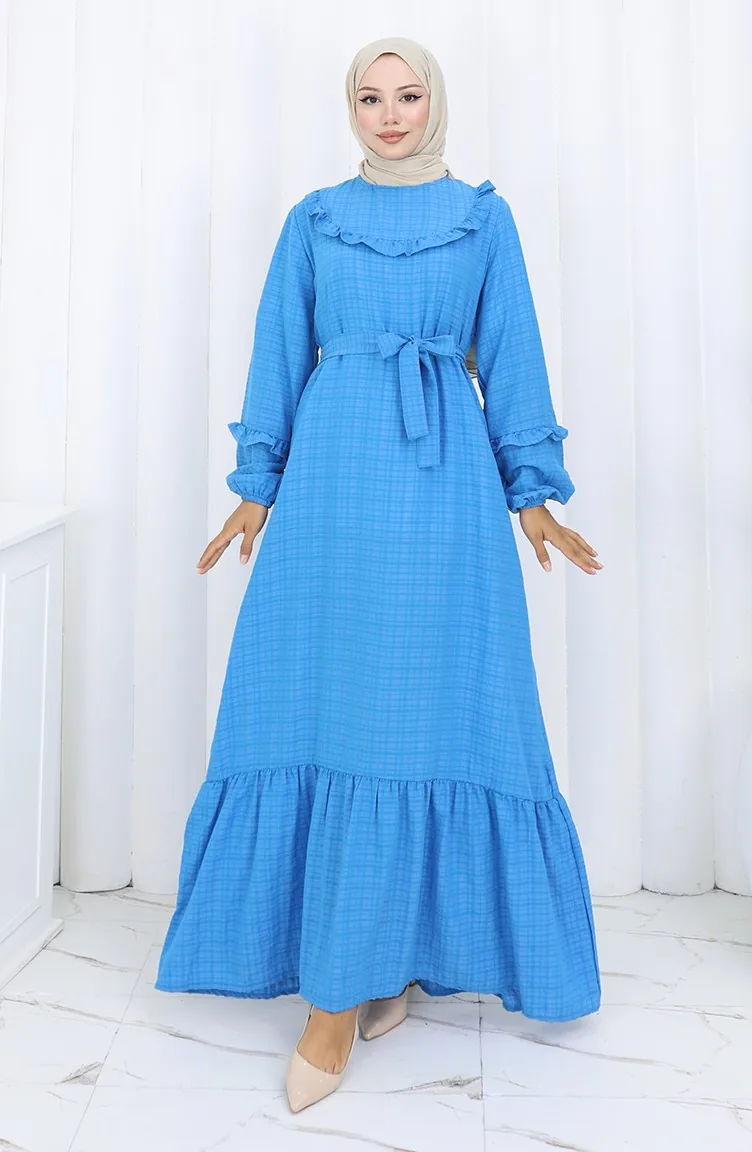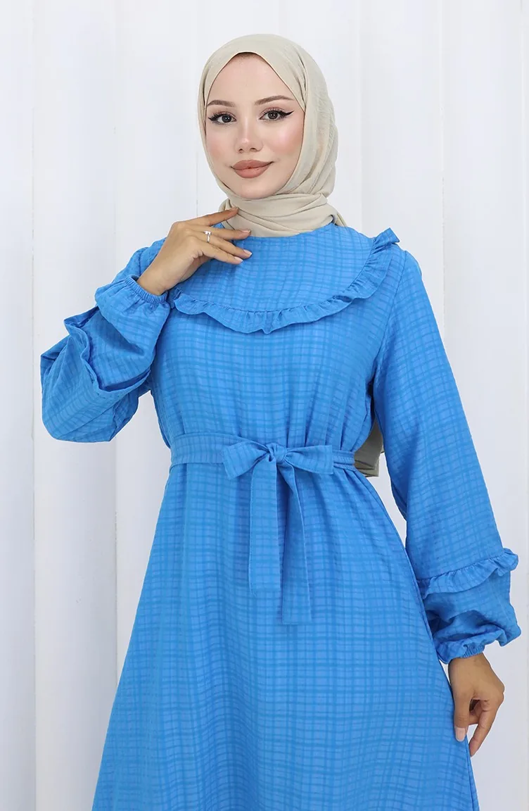 Kleid Mit Rüschen Und Gürtel 2159-06 Petrol 2159-06