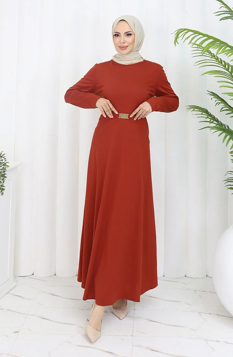 Kleid Mit Schnalle 7123-01 Ziegelrot 7123-01