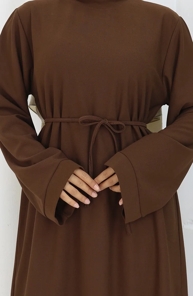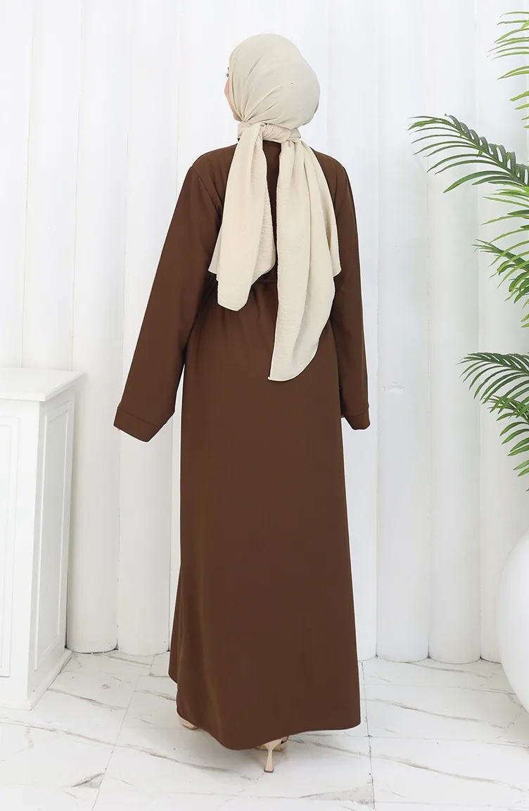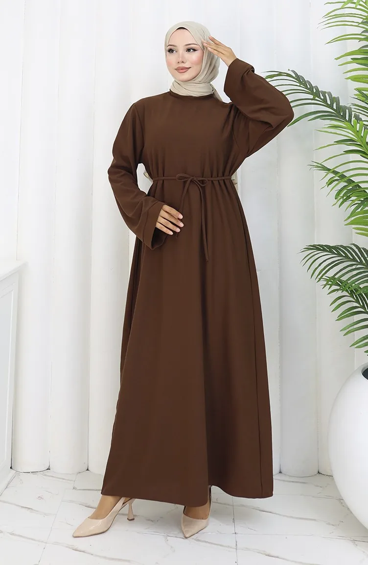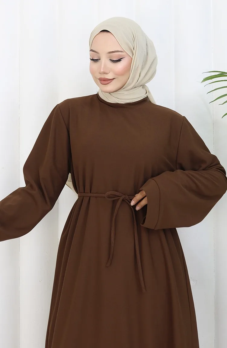 Kleid Mit Schnürung Und Manschettenärmeln 2160-01 Braun 2160-01