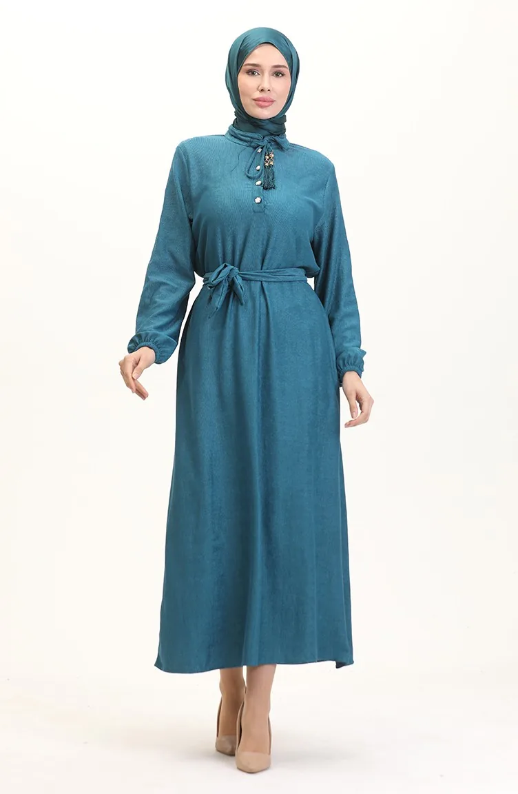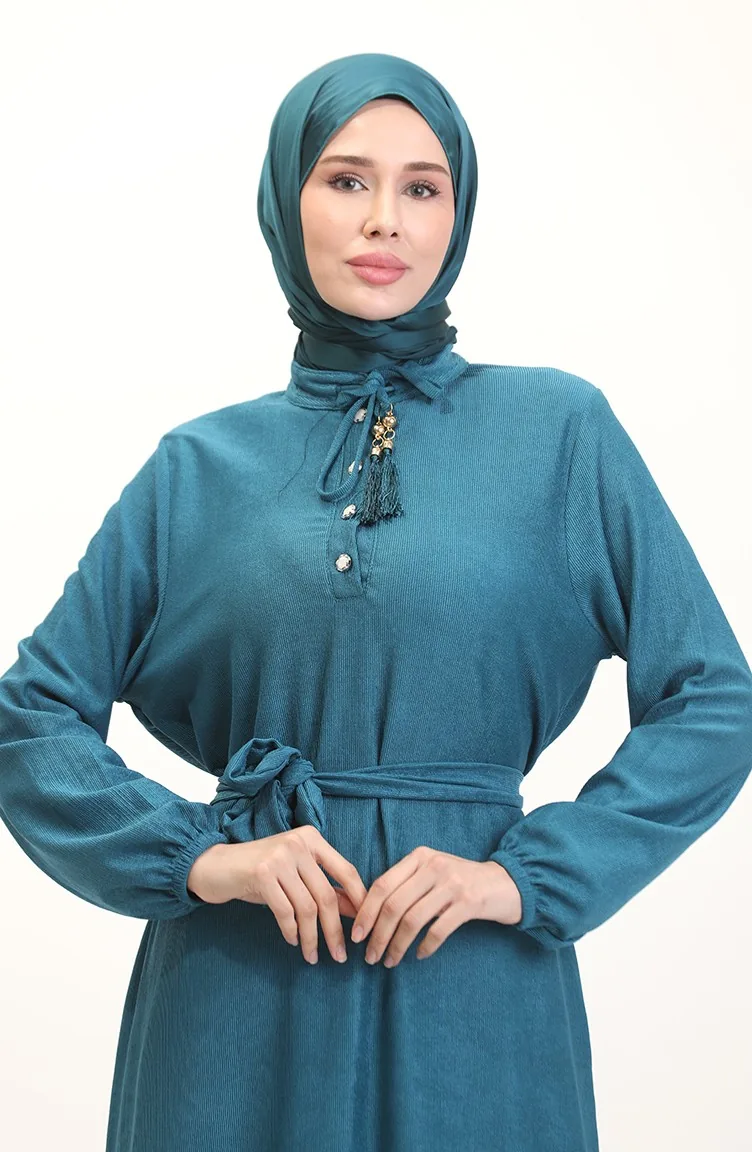 Prächtiges Kleid Mit Kragen Und Knöpfen 5025-03 Petrol 5025-03