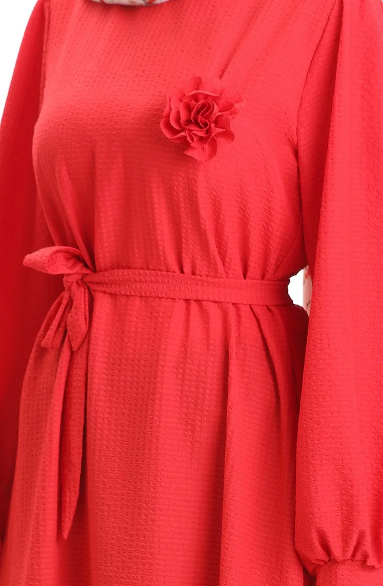 Seersucker Kleid Mit Gürtel 2043-01 Rot 2043-01
