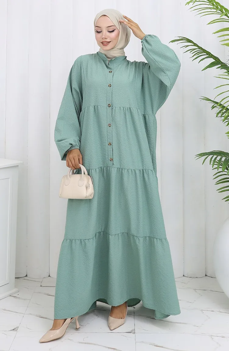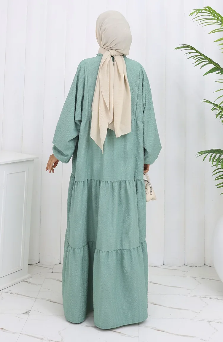 Seersucker Stoff Halbgeknöpftes Kleid 2131-03 Mandelgrün 2131-03