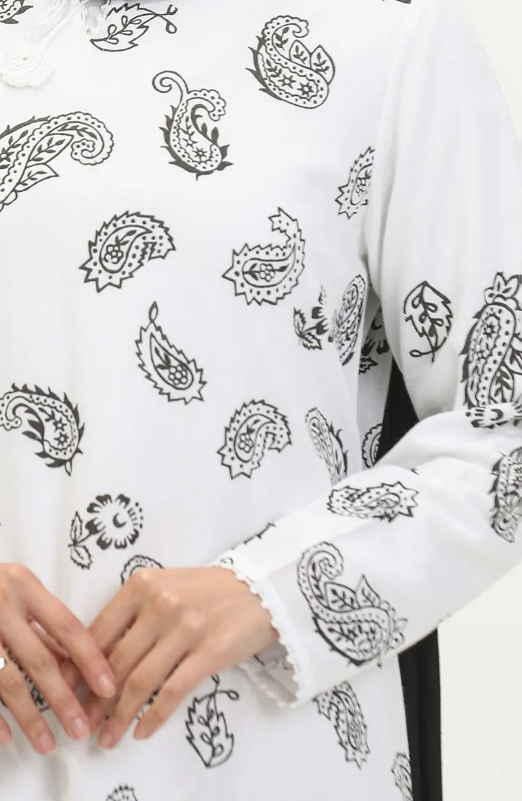 Weiße Farbe wird verwendet. Şile Bezi. Entworfen mit gemustertem Stoff. Es ist Langärmlig. Jede Kleidungsseite ist die bevorzugte Nullkragenform. Es ist für vier Jahreszeiten geeignet. Die Länge wird gemäß den Standardgrößen angepasst.