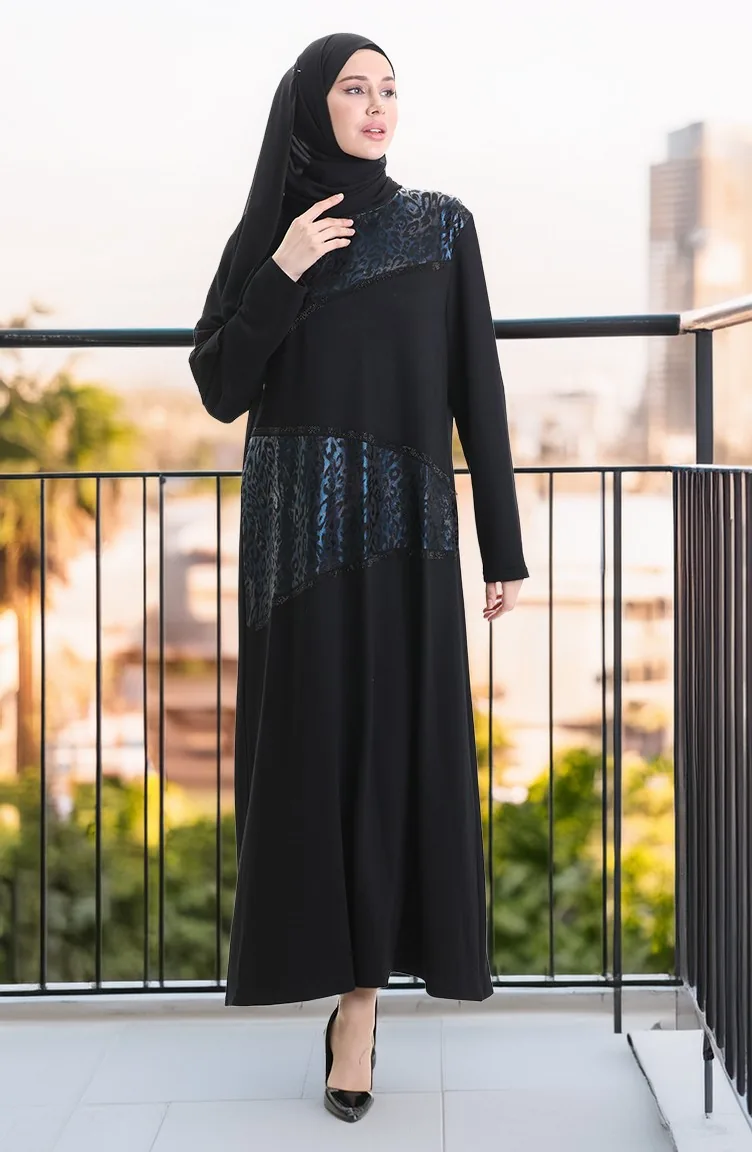 Dunkelblau farbe wurde verwendet. Polyester wird verwendet. Entworfen mit gemustertem Stoff. Jede Kleidungsseite ist die bevorzugte Nullkragenform. Es ist für vier Jahreszeiten geeignet. Günlük. Große Größen Option ist verfügbar.