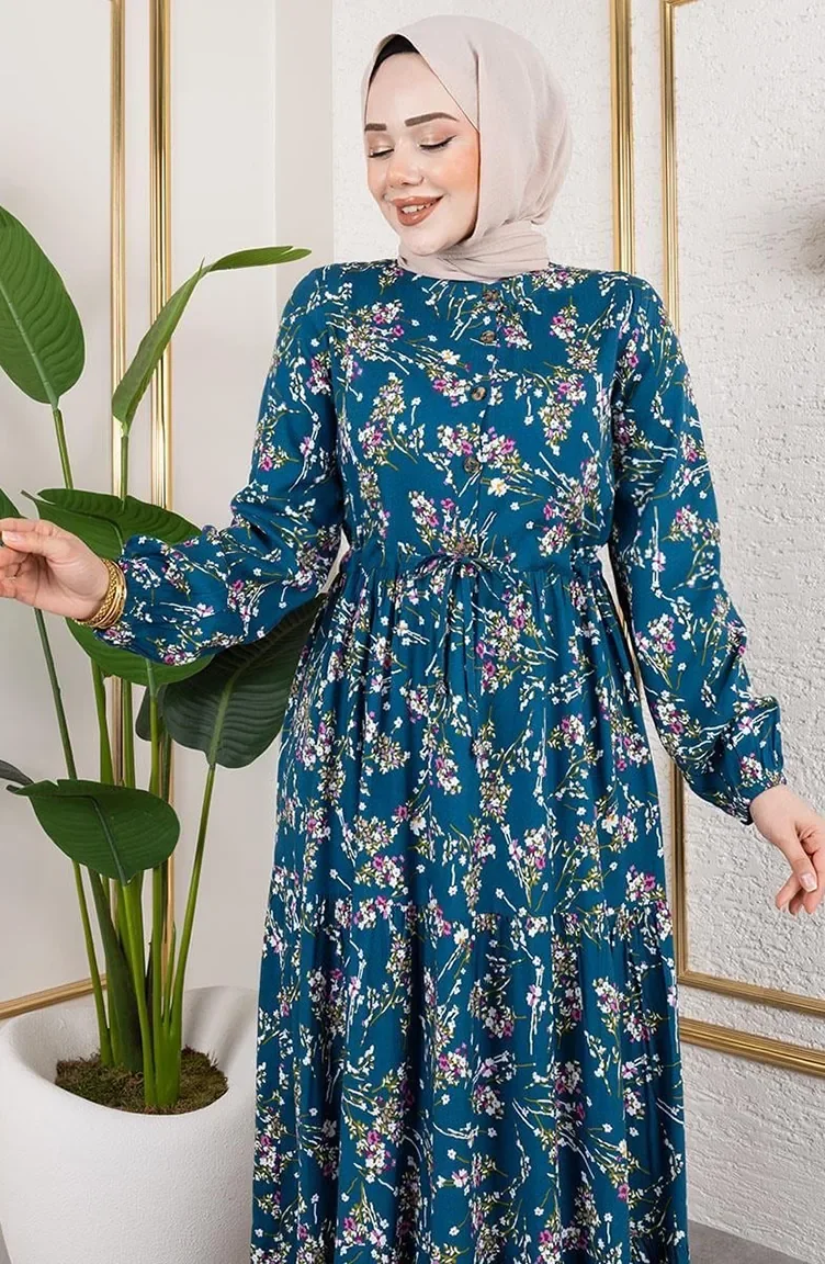 Petroleumfarbe wird verwendet. Viskose ist ein synthetischer Stofftyp und ist bequem und nützlich zu verwenden. Entworfen mit gemustertem Stoff. Es wurde mit Knopf verwendet, um die Verwendung zu vereinfachen. Hergestellt als Richter-Kragen. Es ist für vier Jahreszeiten geeignet. Große Größen Option ist verfügbar.