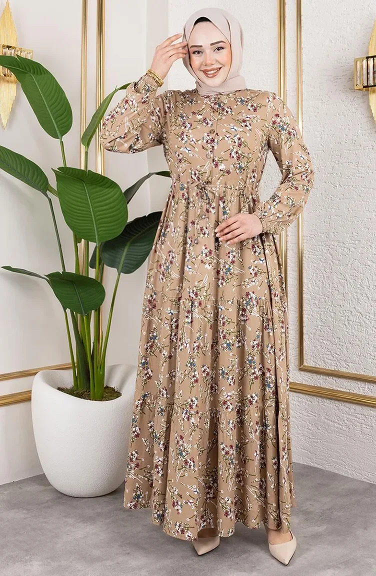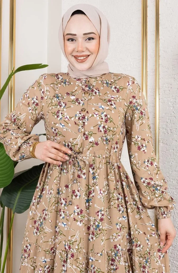Viskose Kleid Mit Bindeband An Der Taille 7122-06 Nerz 7122-06