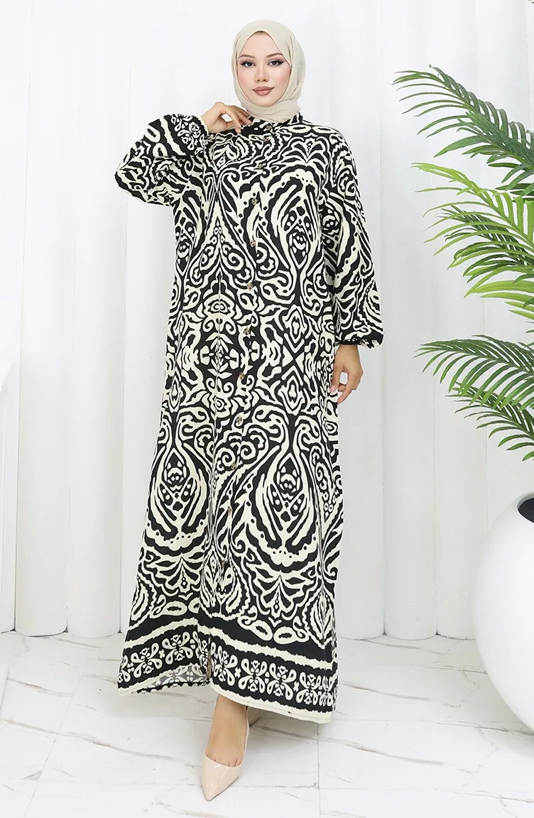 Viskose Kleid Mit Knöpfen 2095-06 Schwarz 2095-06