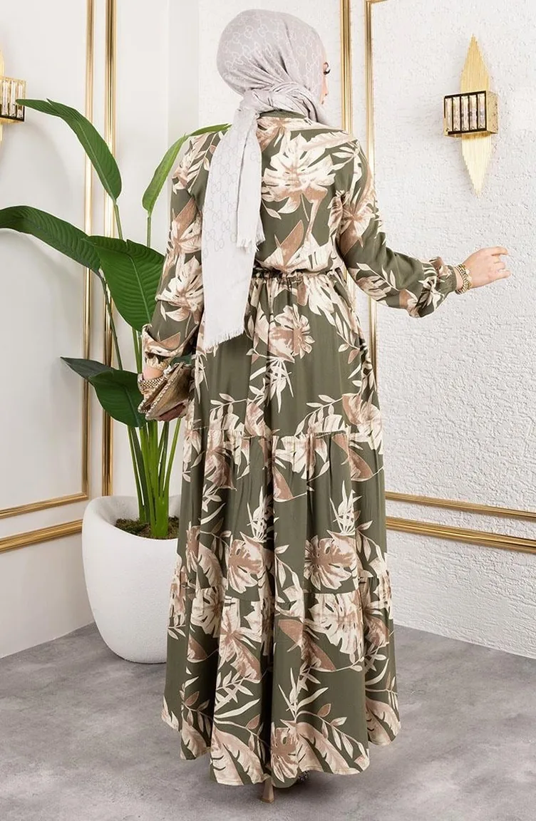 Viskose Kleid Mit Tunnelzug 7119-02 Khaki 7119-02