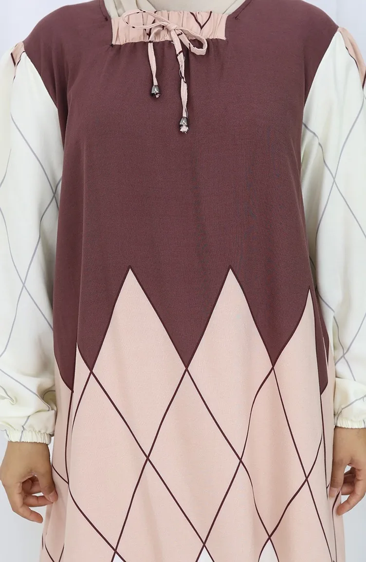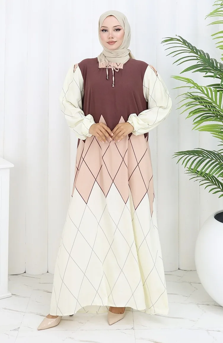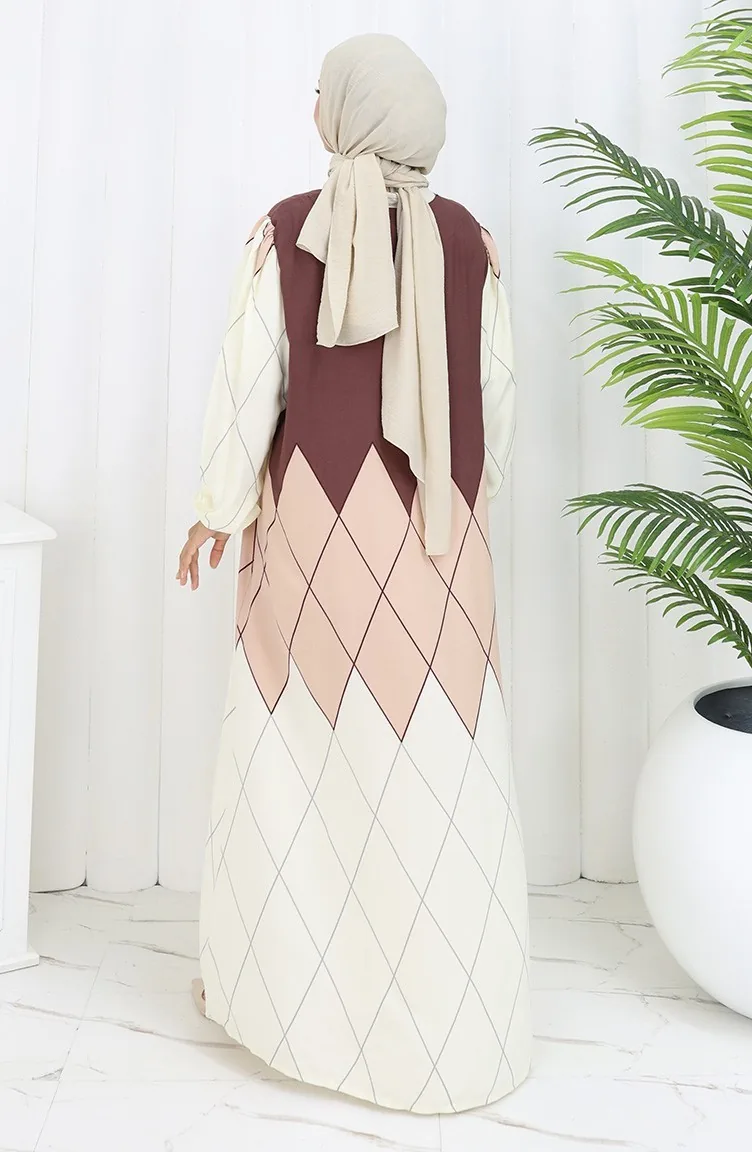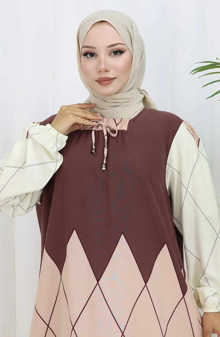 Es wurde Nerzfarbe verwendet. Viskose ist ein synthetischer Stofftyp und ist bequem und nützlich zu verwenden. Entworfen mit gemustertem Stoff. Es ist Langärmlig. Entwickelt für den Sommer. Frau. Große Größen Option ist verfügbar.