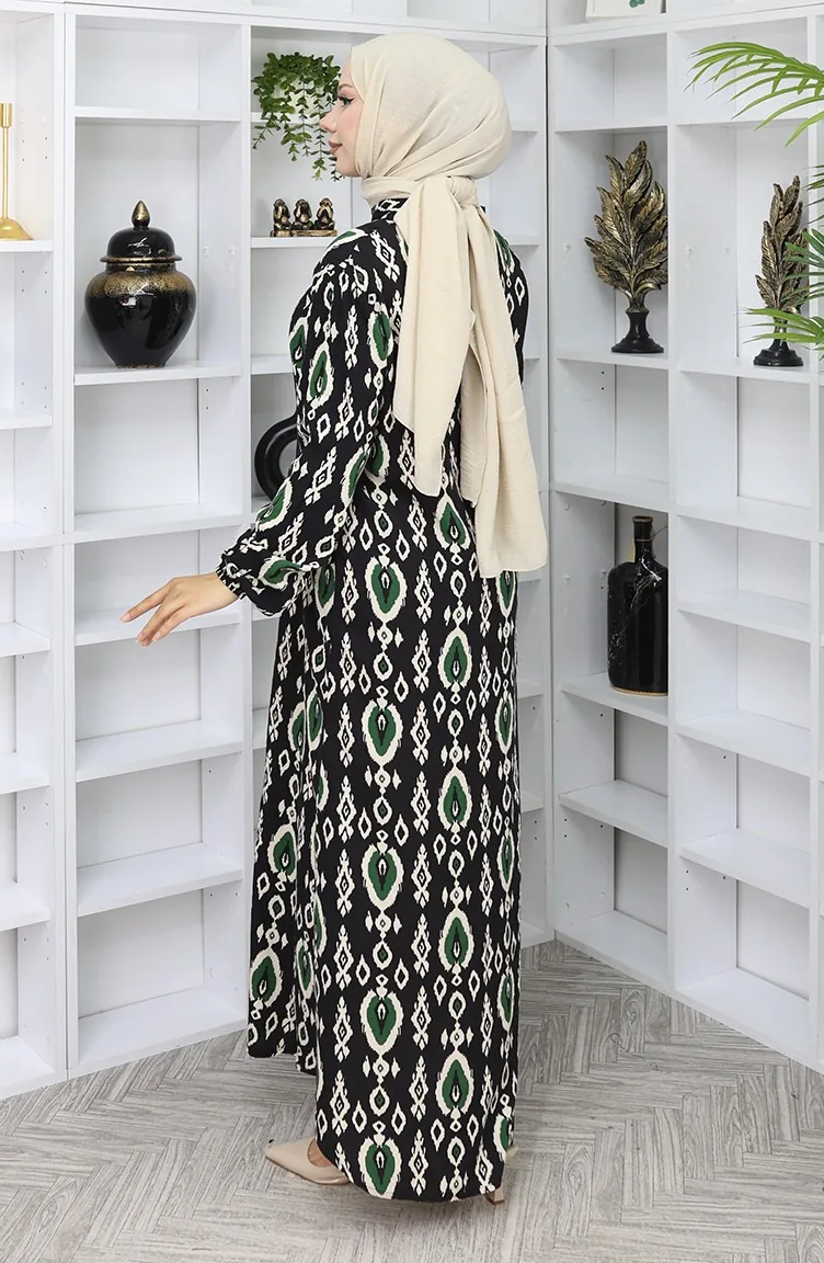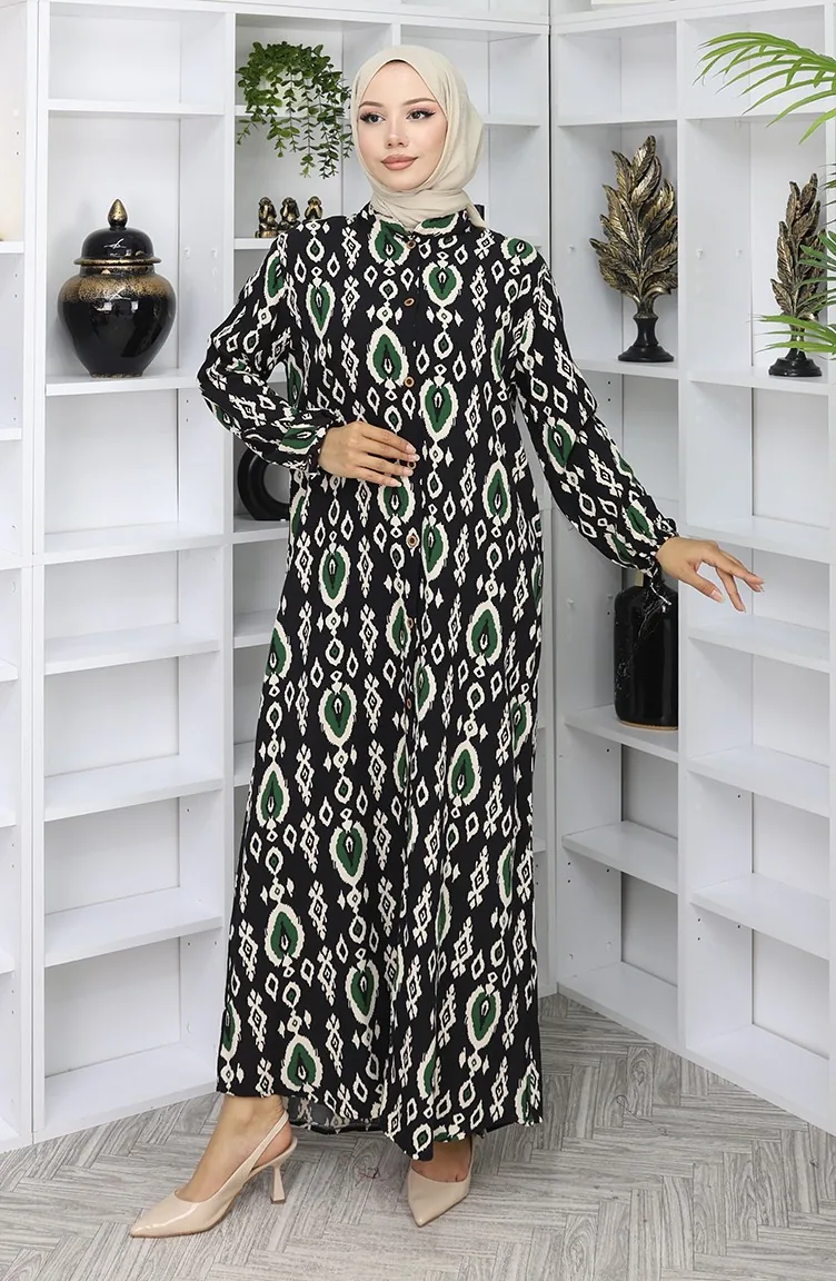Viskose Stoff Kleid Mit Knöpfen 2050-03 Schwarz Smaragdgrün 2050-03